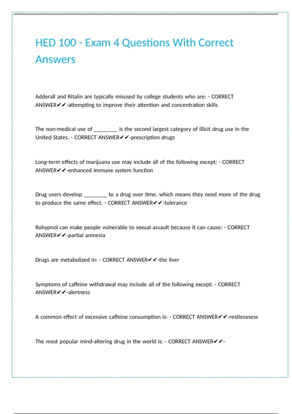 The |most |popular |mind-altering |drug |in |the |world |is: |- |CORRECT |ANSWER✔✔-