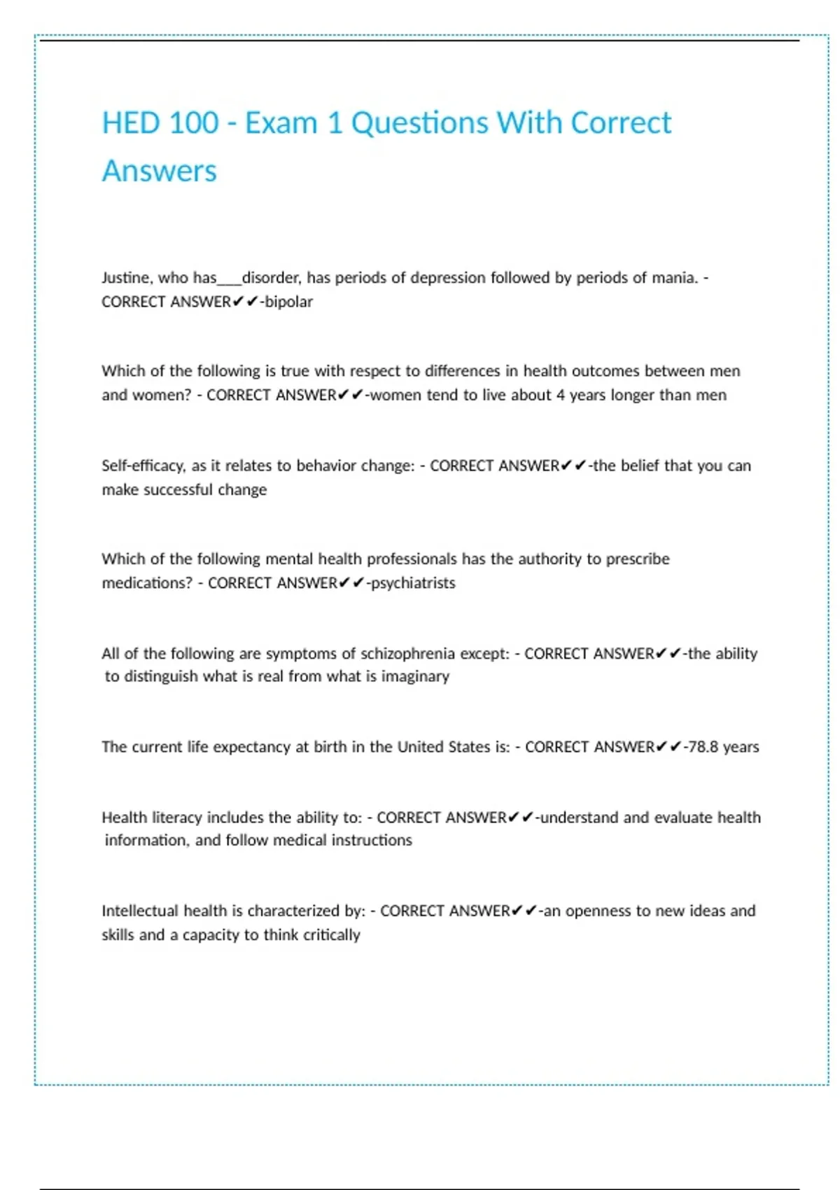 HED 100 - Exam 1 Questions With Correct