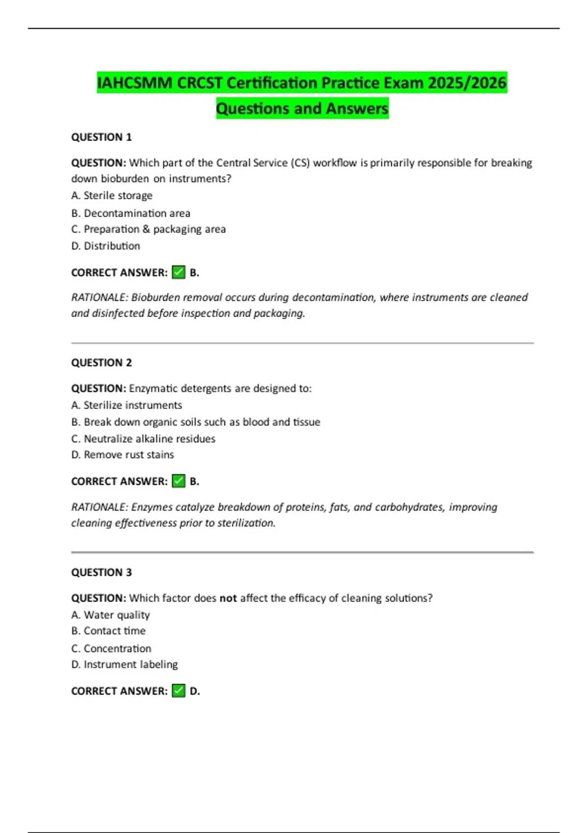 IAHCSMM CRCST Certification Practice Exam 2025/2026 Questions and Answers