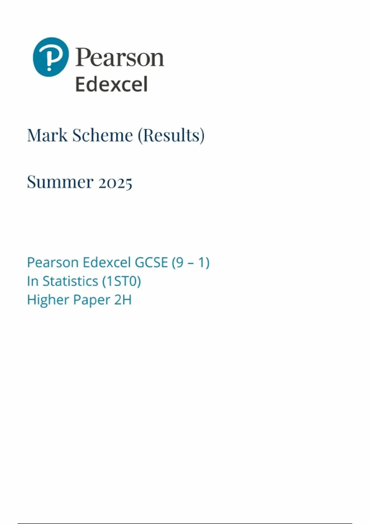 2025 Pearson Edexcel GCSE Statistics PAPER 2 MARK SCHEME 1ST0/2H