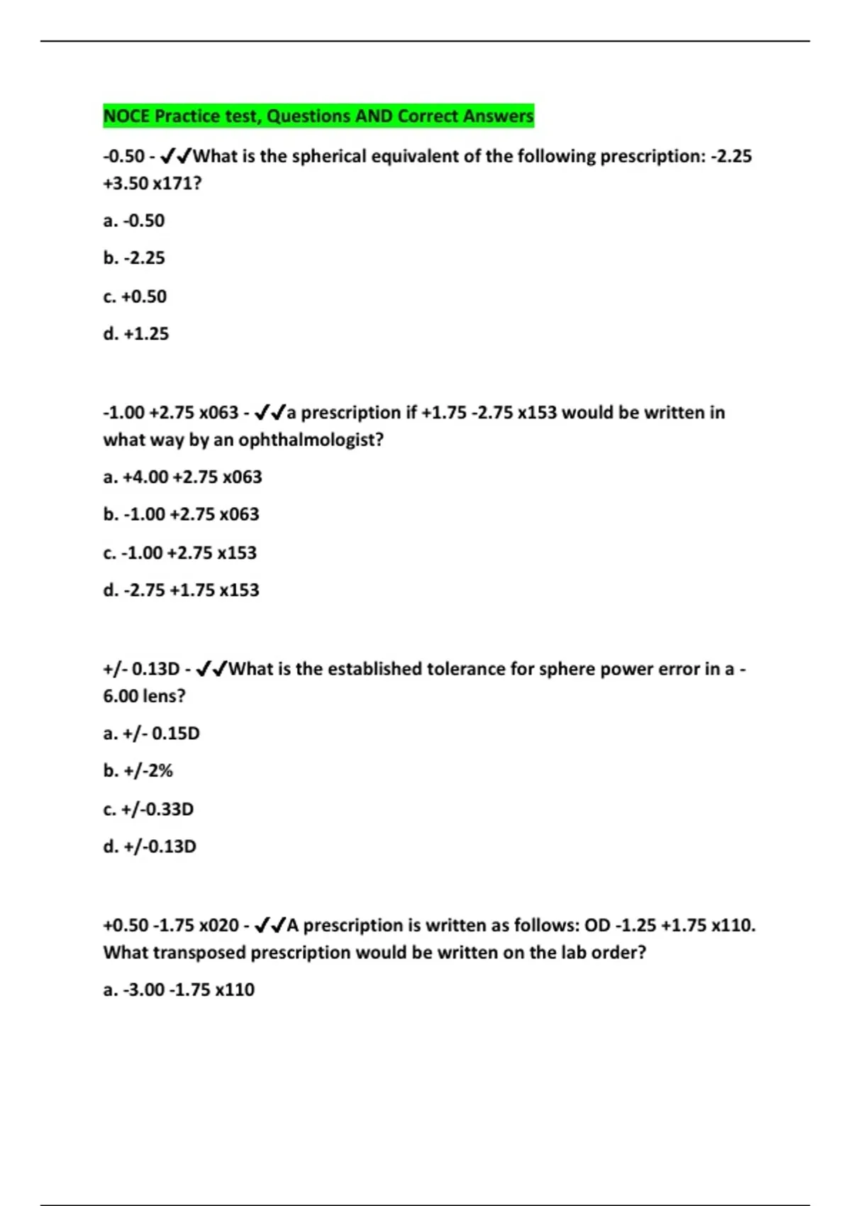 NOCE Practice test, Questions AND Correct Answers