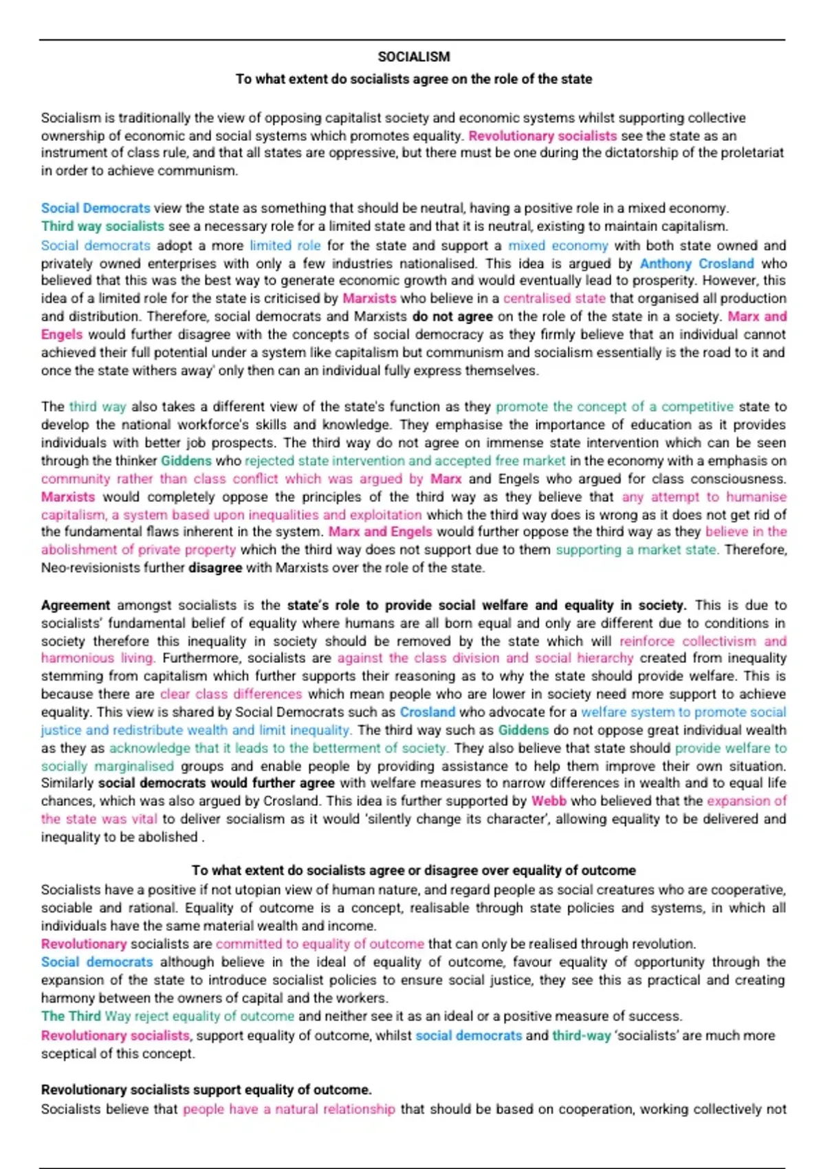 Agreement amongst socialists is the state’s role to provide social welfare and equality in society. This is due to