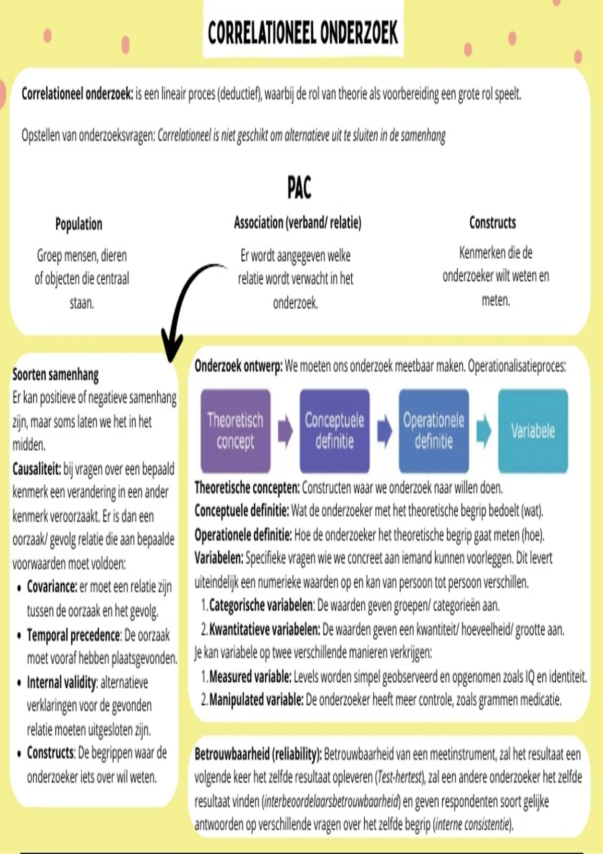 oorzaak/ gevolg relatie die aan bepaalde Operationele definitie: Hoe de onderzoeker het theoretische begrip gaat meten (hoe).