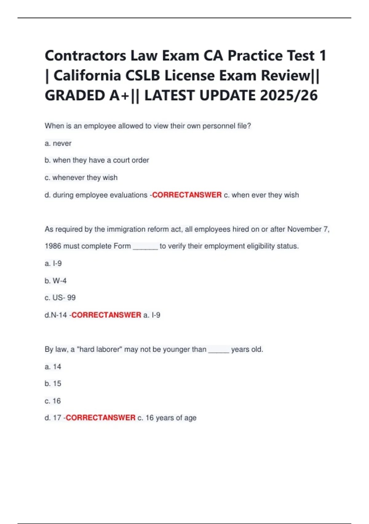 Contractors Law Exam CA Practice Test 1 | California CSLB License Exam Review|| GRADED A+|| LATEST UPDATE 2025/26