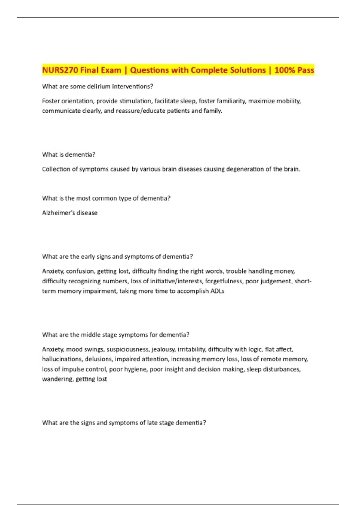 nurs270 final exam questions with complete solut