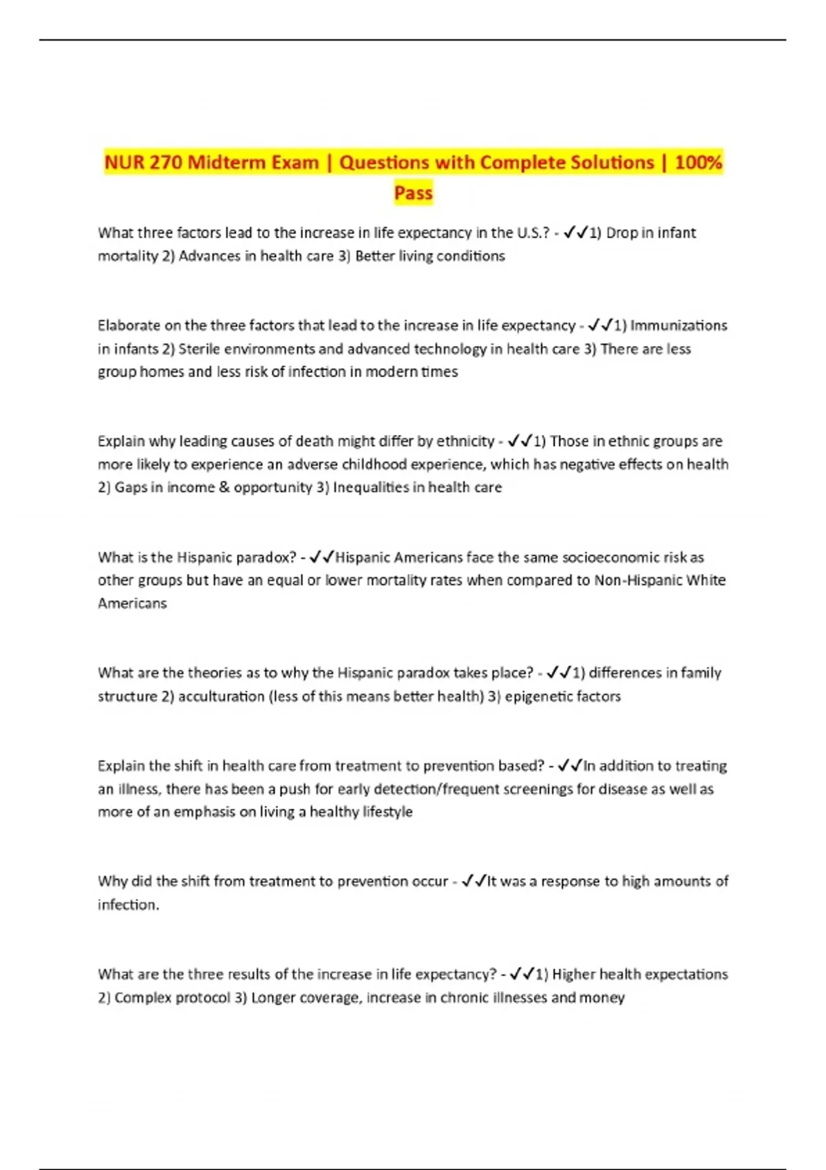 NUR 270 Midterm Exam | Questions with Complete Solutions | 100% Pass