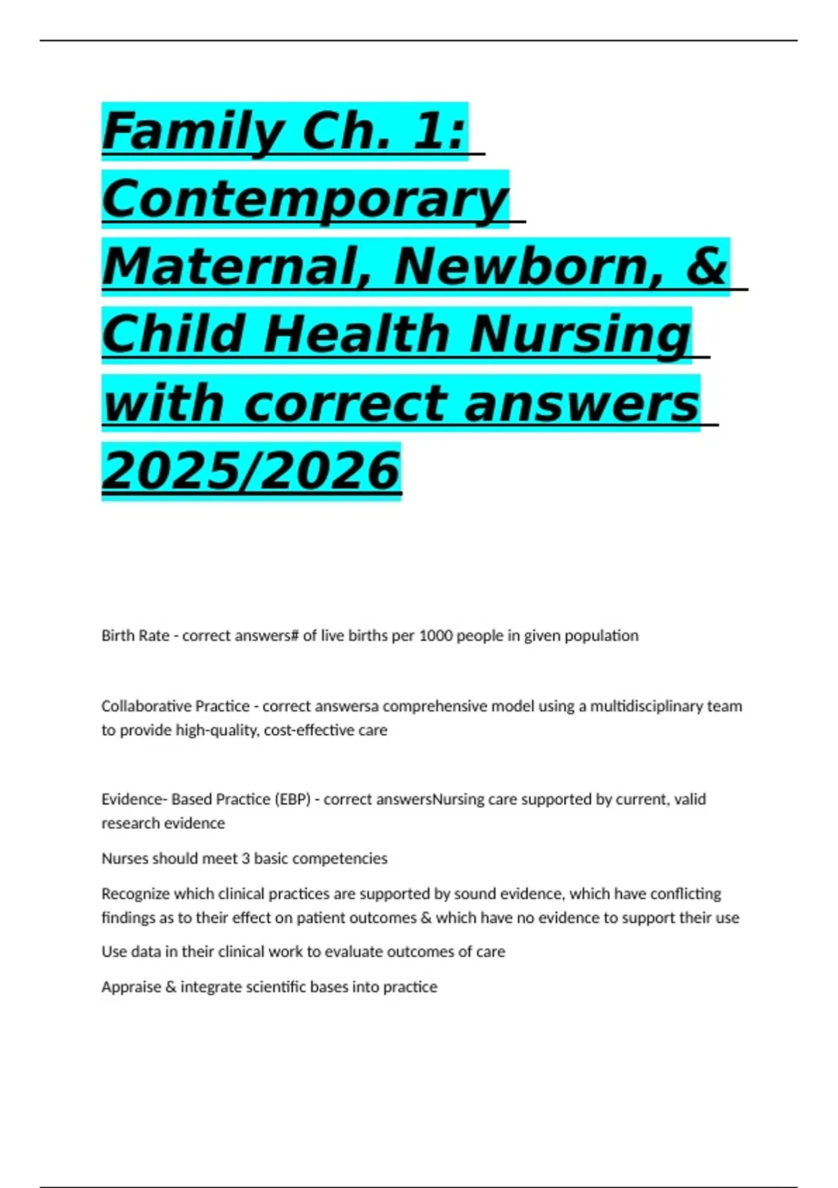 Evidence- Based Practice (EBP) - correct answersNursing care supported by current, valid