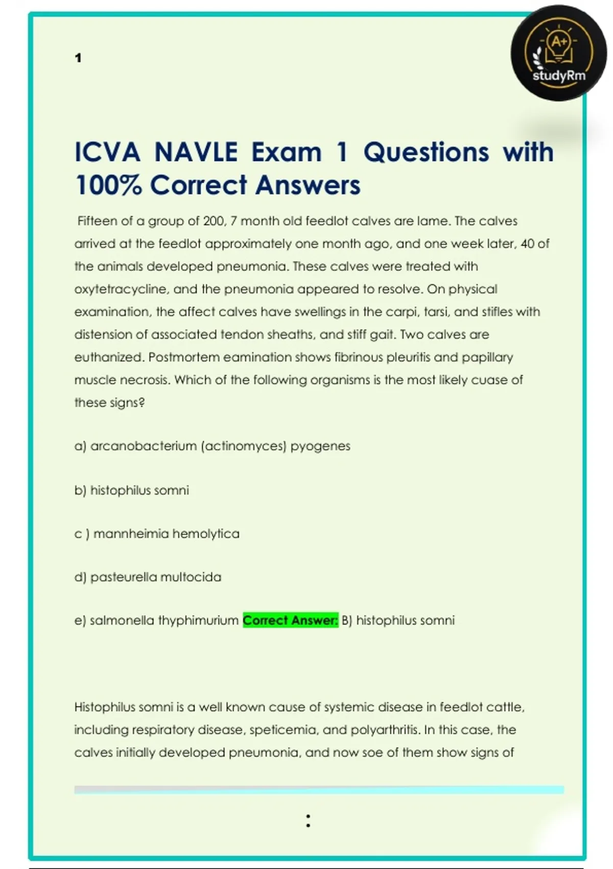 e) salmonella thyphimurium Correct Answer: B) histophilus somni