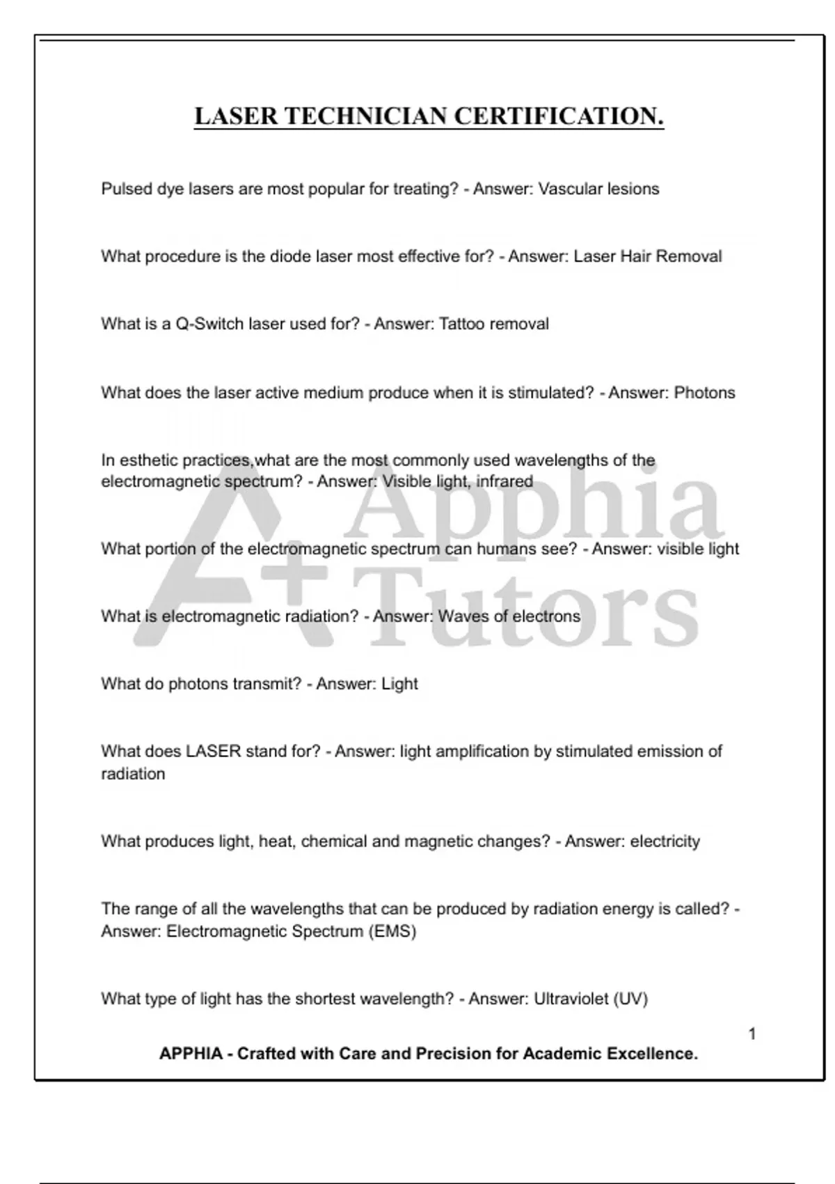 LASER TECHNICIAN CERTIFICATION.