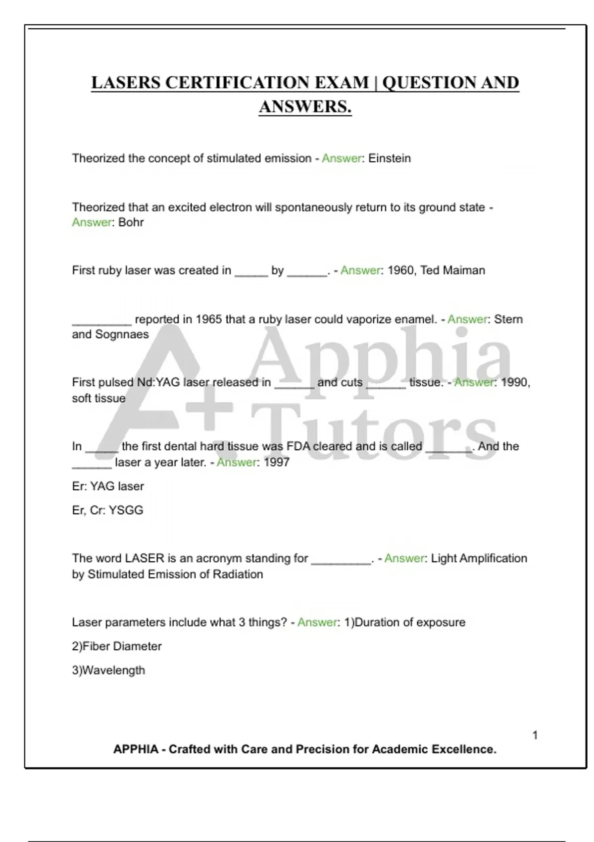 _________ reported in 1965 that a ruby laser could vaporize enamel. - Answer: Stern