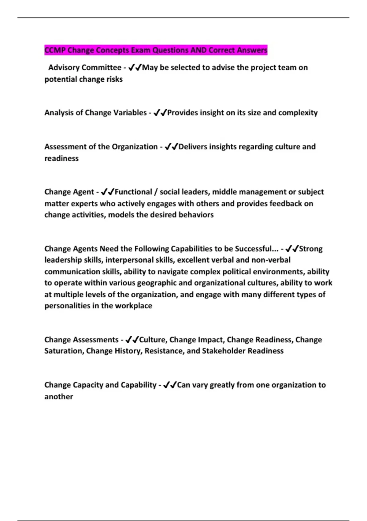 CCMP Change Concepts Exam Questions AND Correct Answers