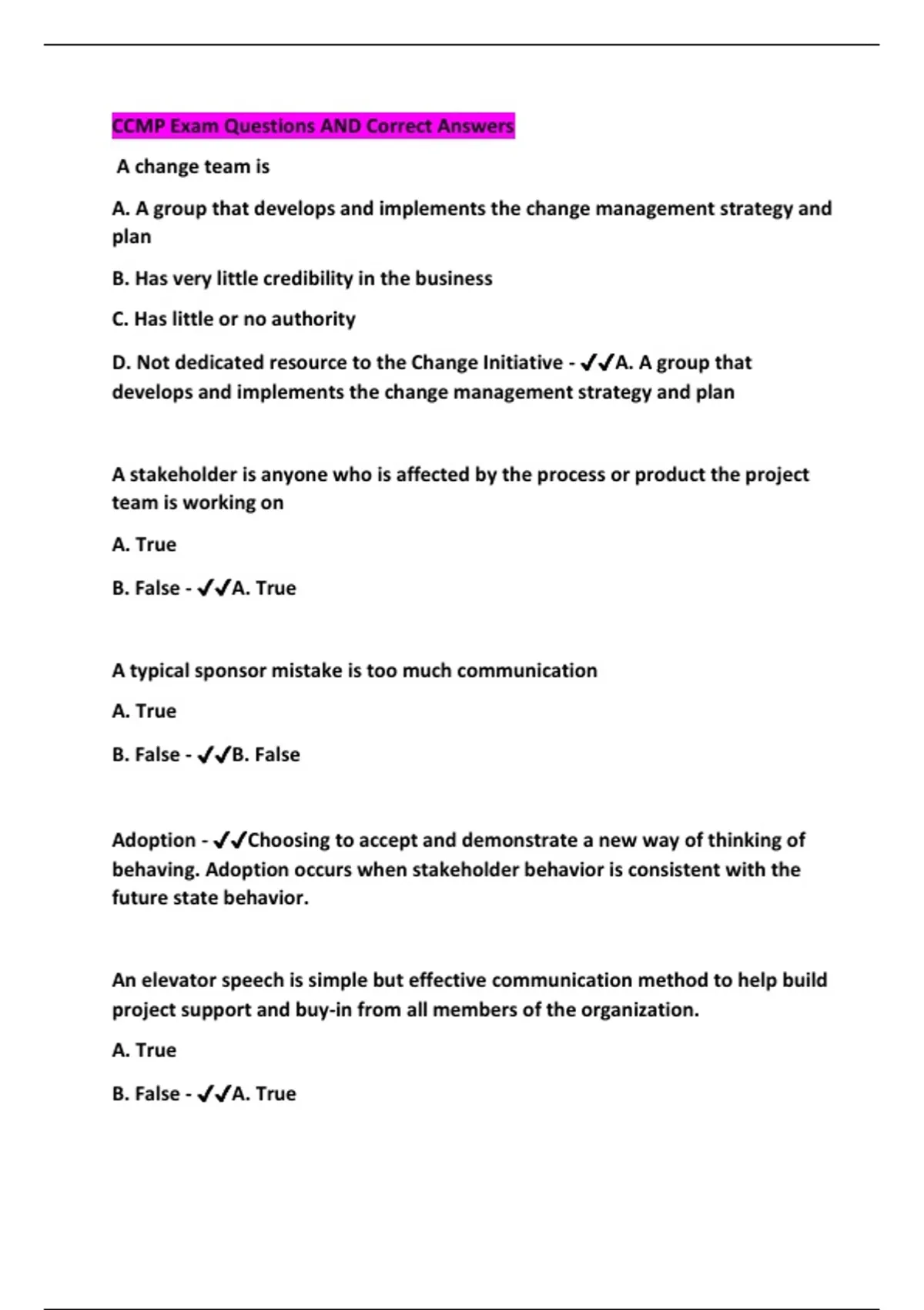 CCMP Exam Questions AND Correct Answers