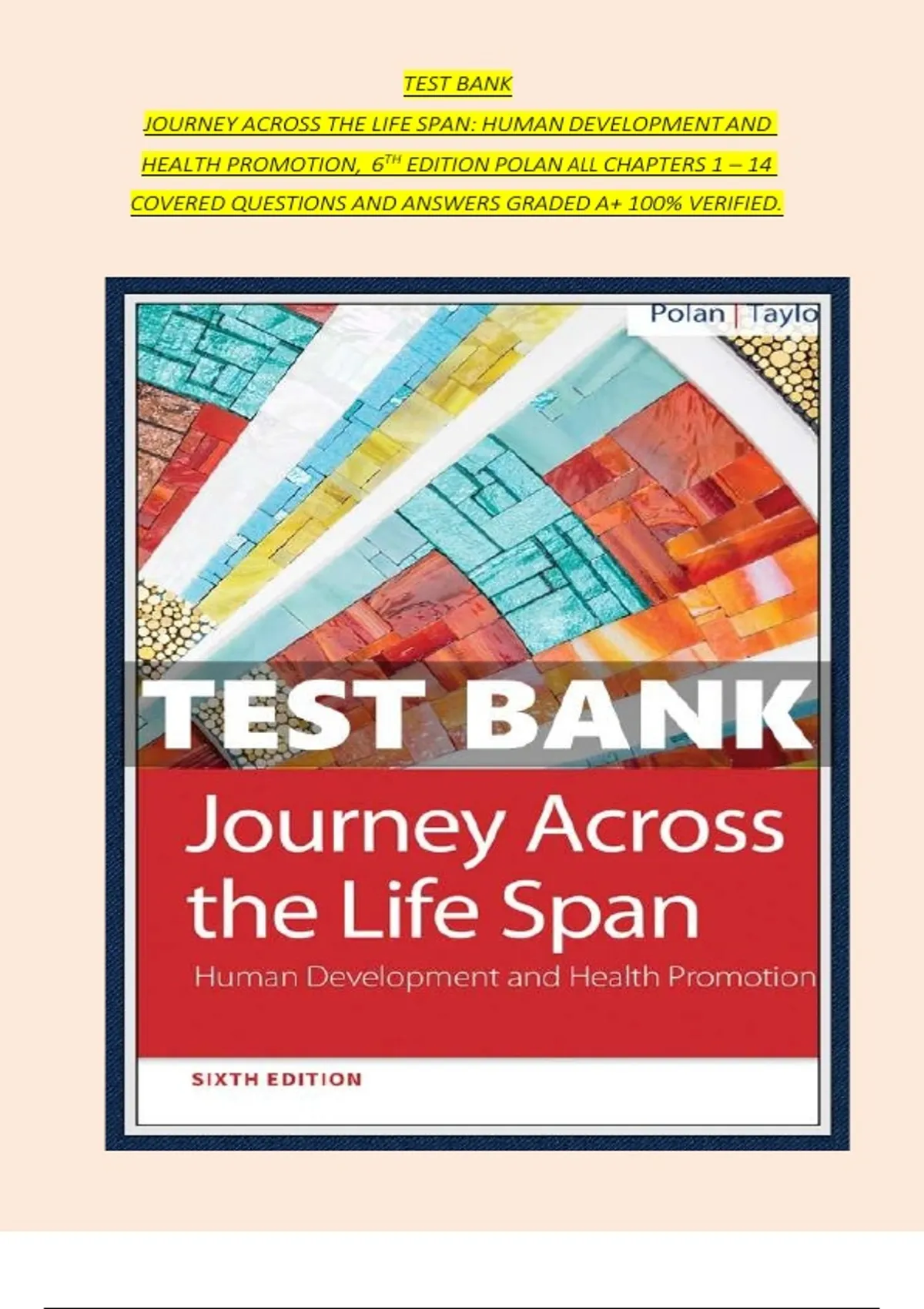 , JOURNEY ACROSS THE LIFE SPAN 6TH EDITION POLAN TEST BANK