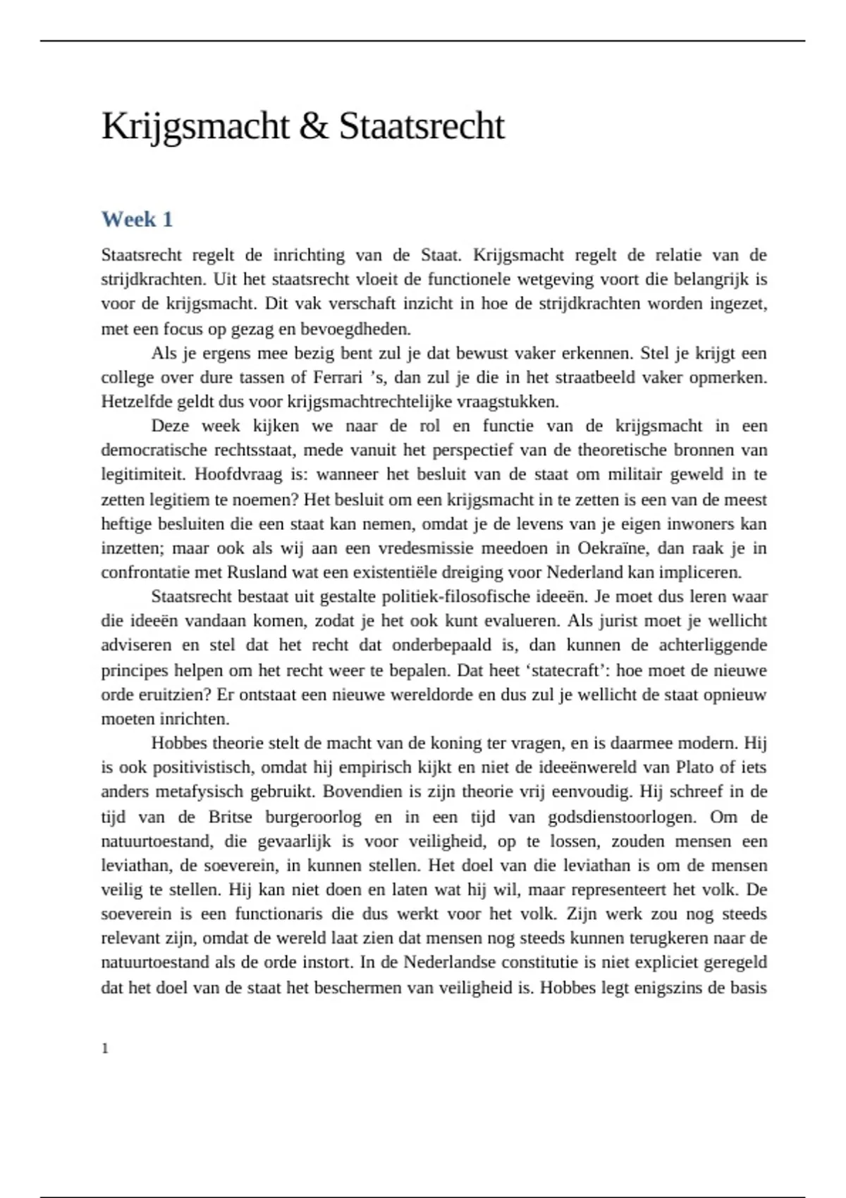 Hoorcollege aantekeningen Krijgsmacht en Staatsrecht