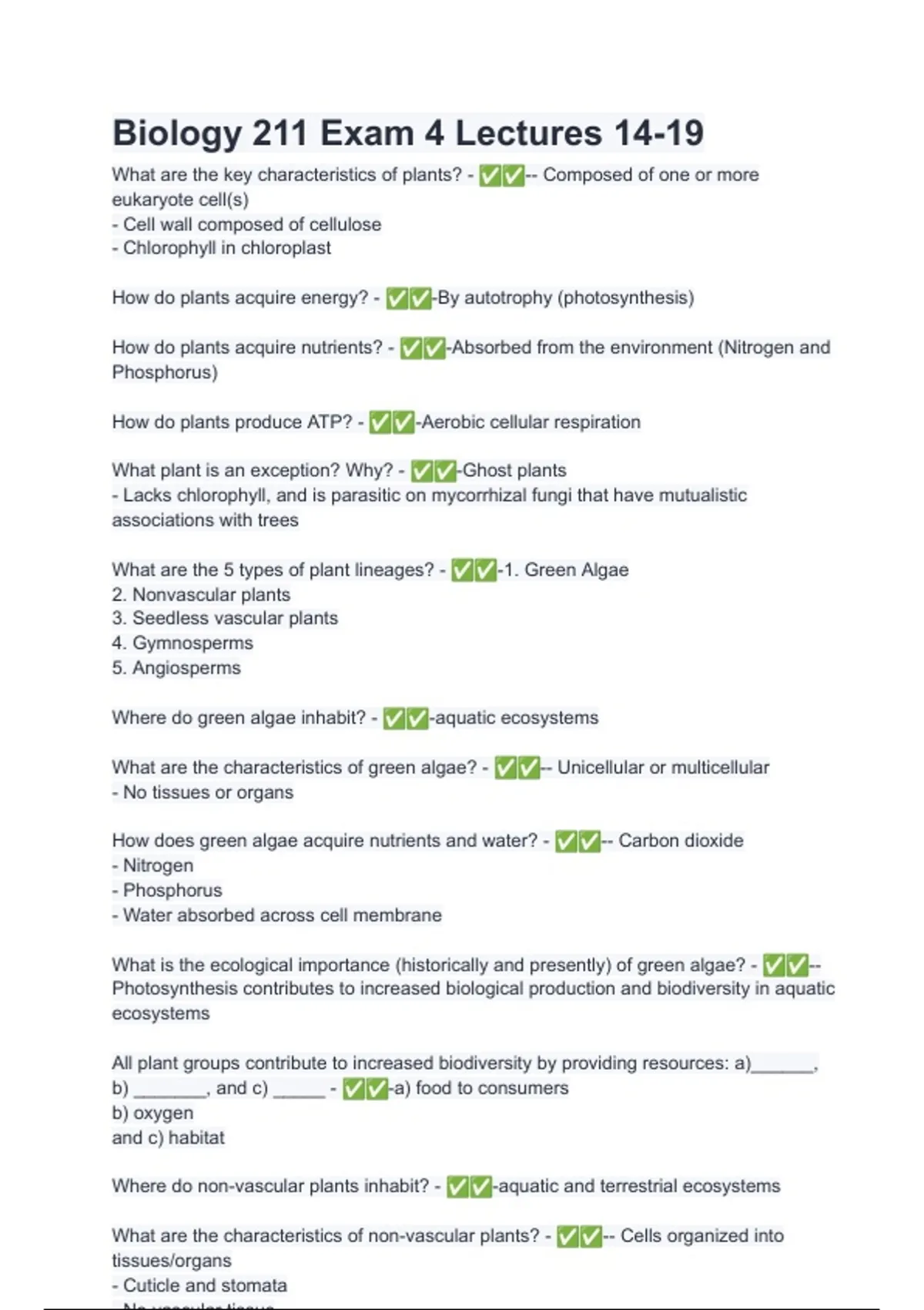 What are the key characteristics of plants? - ✅✅-- Composed of one or more