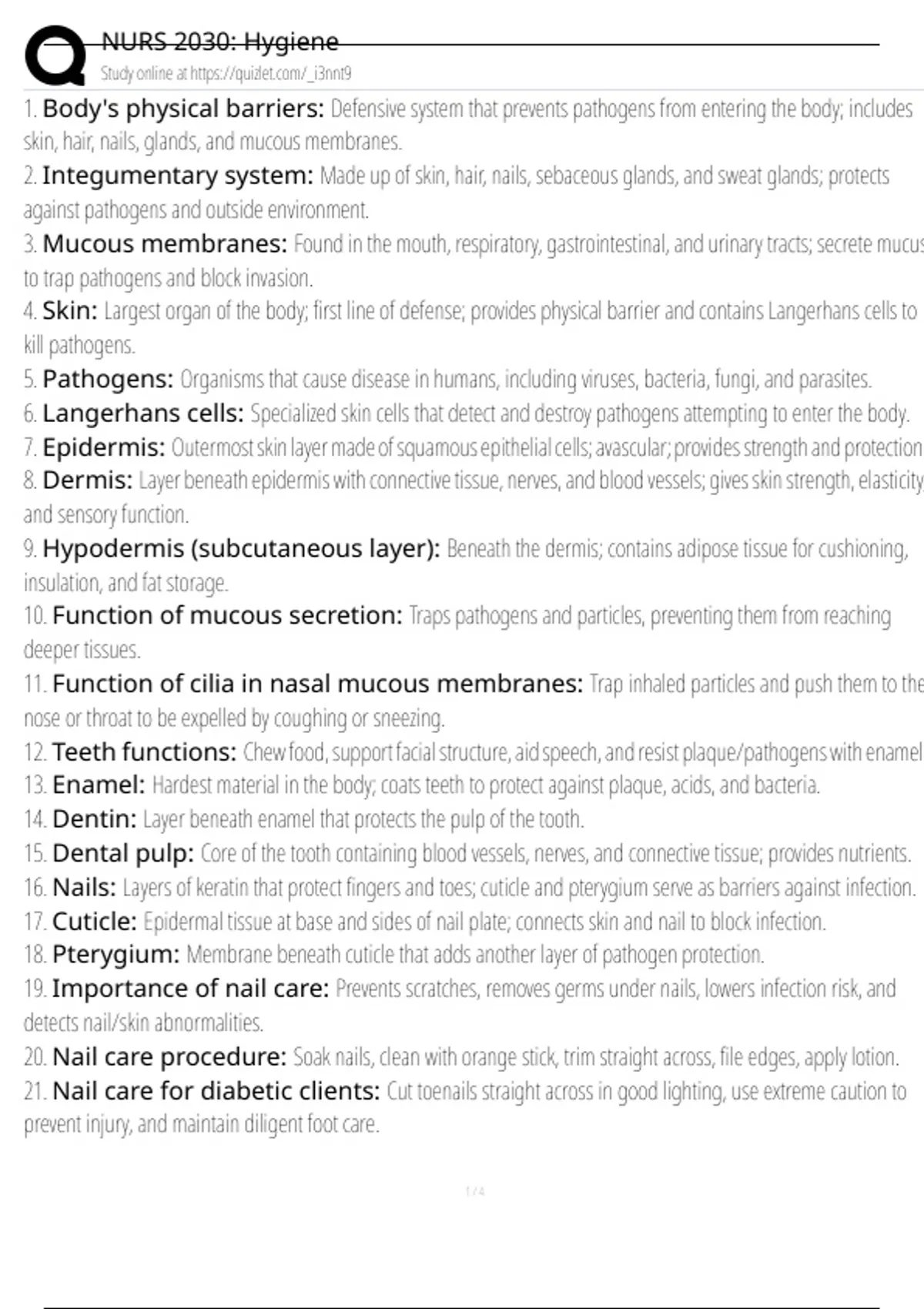 16. Nails: Layers of keratin that protect fingers and toes; cuticle and pterygium serve as barriers against infection.