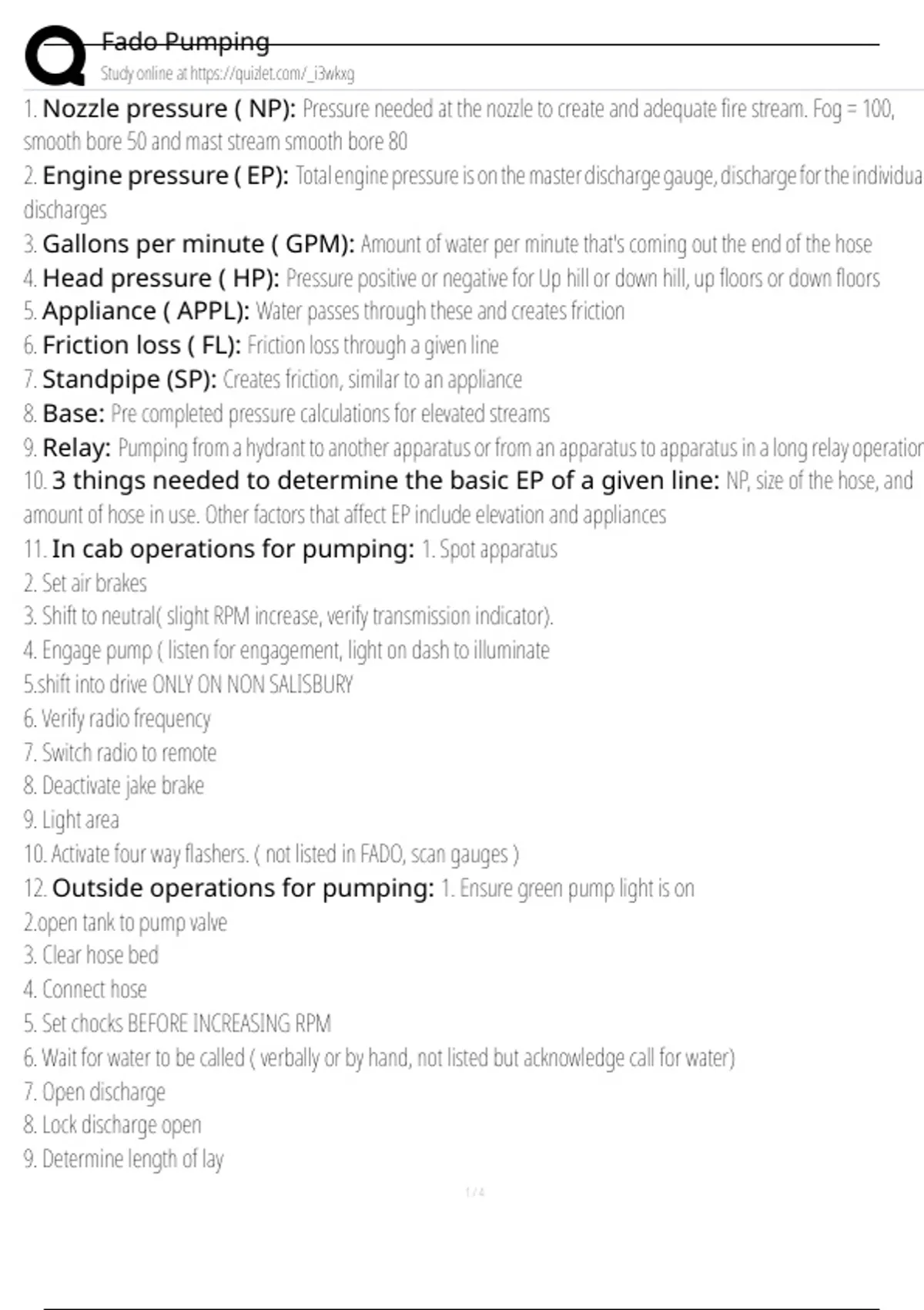 1. Nozzle pressure ( NP): Pressure needed at the nozzle to create and adequate fire stream. Fog = 100,