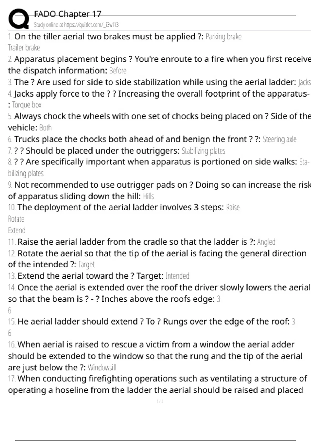 3. The ? Are used for side to side stabilization while using the aerial ladder: Jacks