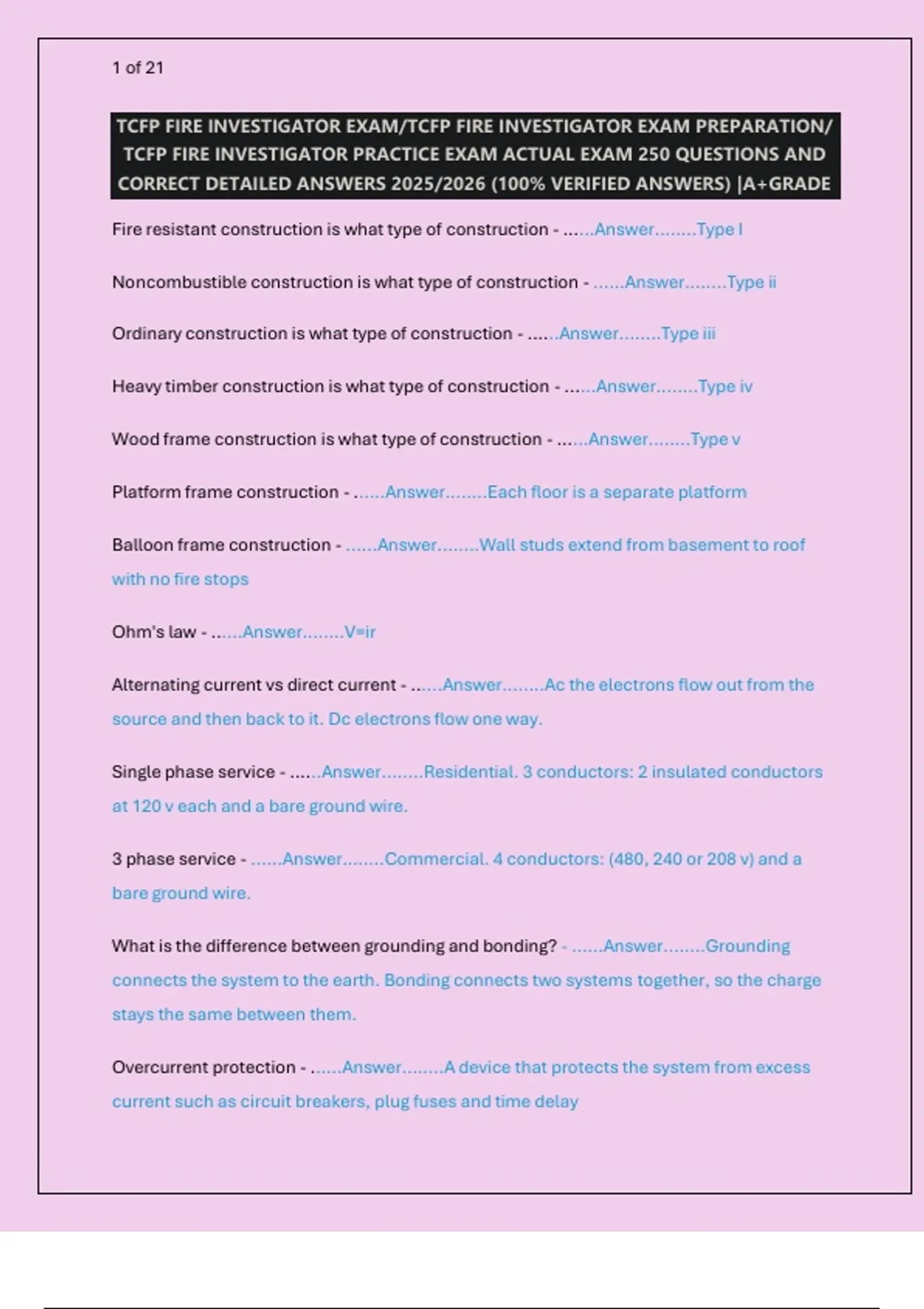 TCFP FIRE INVESTIGATOR PRACTICE EXAM ACTUAL EXAM 250 QUESTIONS AND