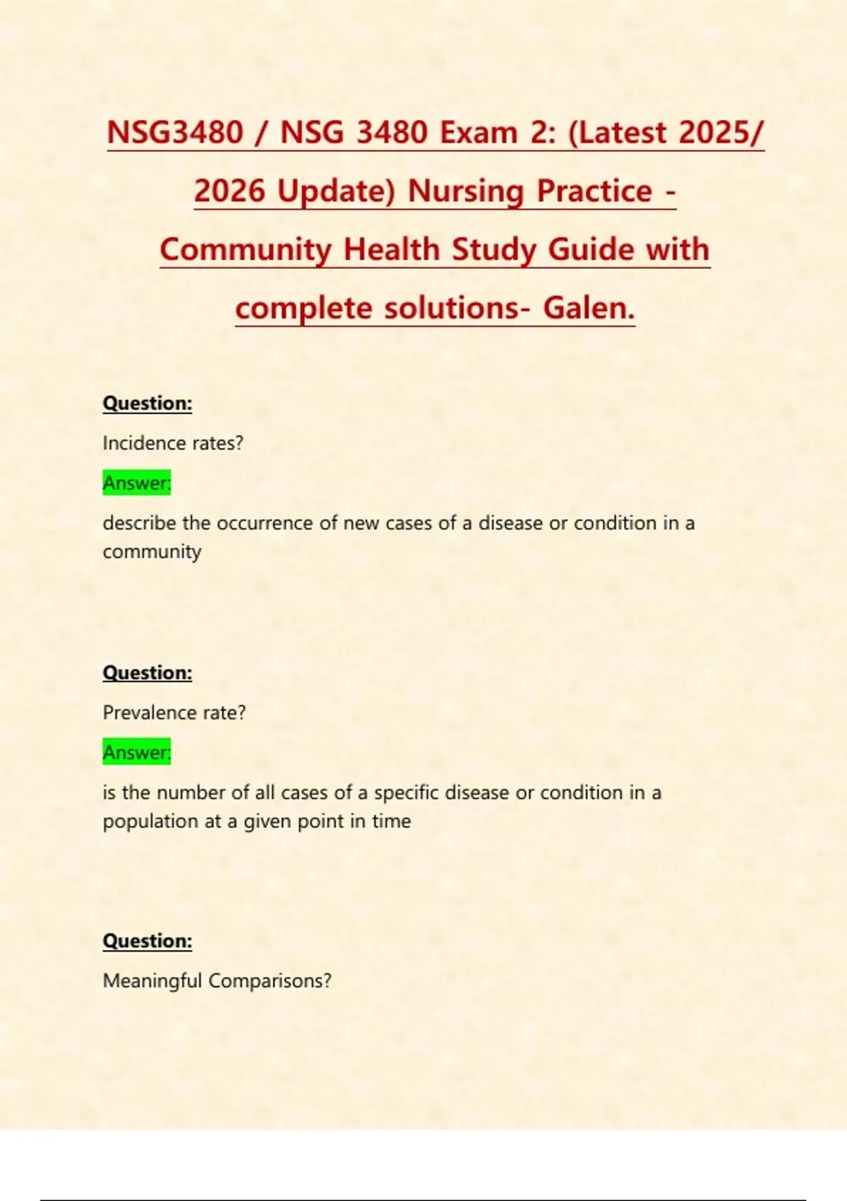 Community Health Study Guide with