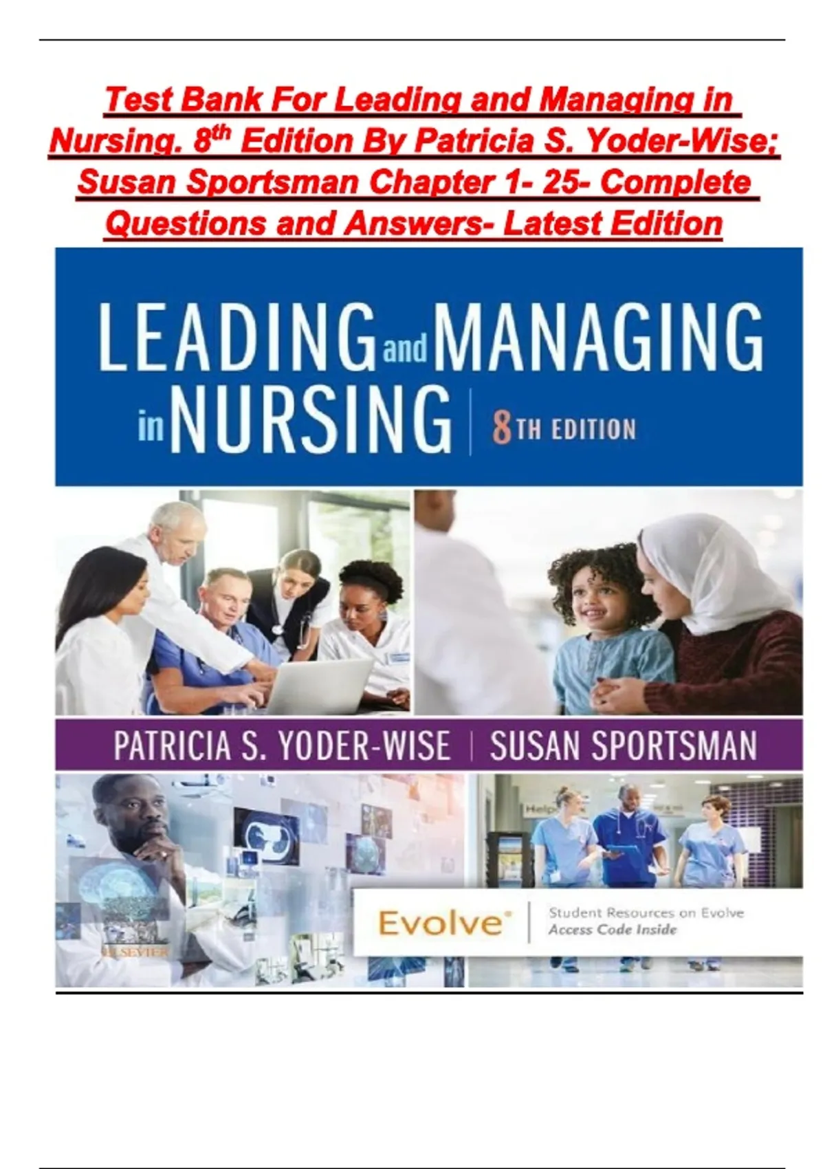 Test Bank for Leading and Managing in Nursing 8th Edition Yoder-Wise | Complete Chapter 1-25 Q&A | Latest Edition | Evolve Resources