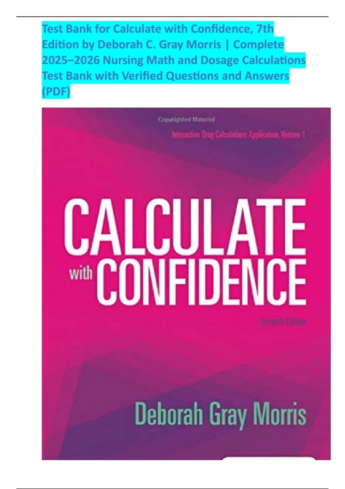 Test Bank for Calculate with Confidence, 7th Edition by Deborah C. Gray Morris | Complete 2025–2026 Nursing Math and Dosage Calculations Test Bank with Verified Questions and Answers (PDF)| All Chapters