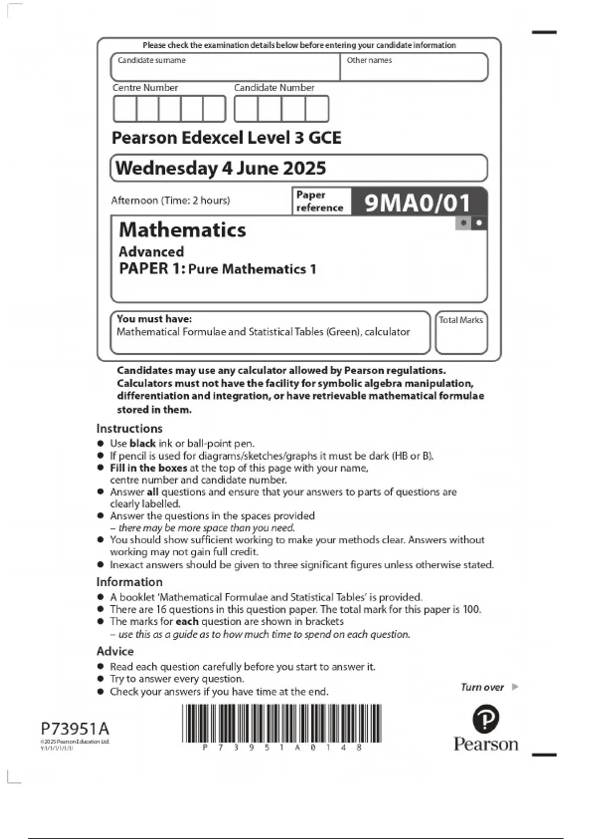 Edexcel Pure Mathematics Paper 1 (2025) complete guide