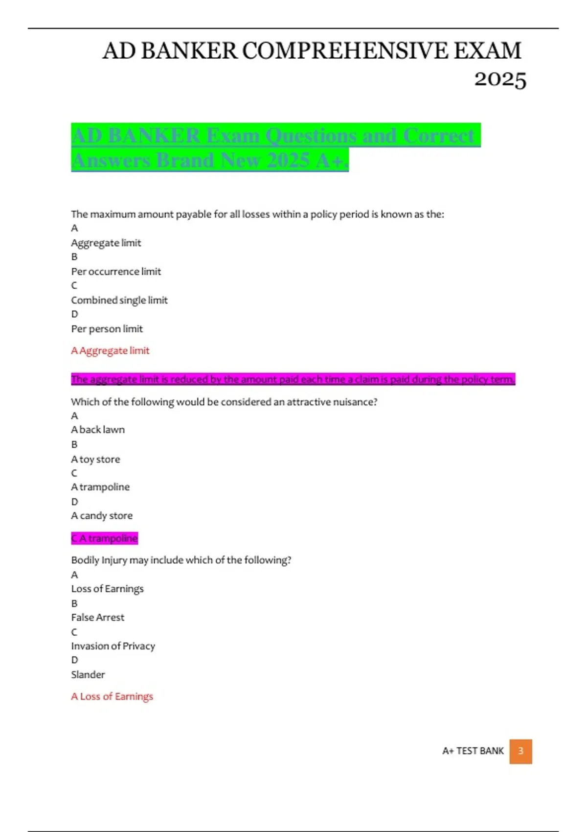 A+ TEST BANK 3