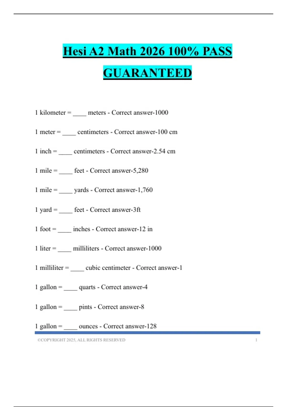 Hesi A2 Math 2026 100% PASS