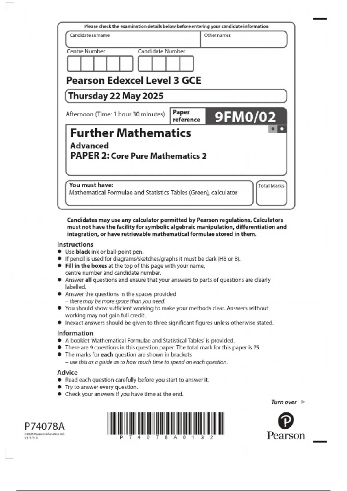 Edexcel Further Mathematics Paper 2(2025)