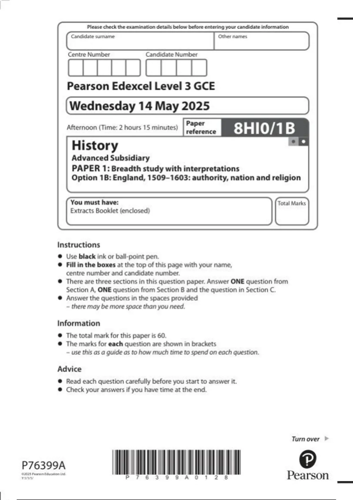 Pearson Edexcel as level History |question paper |2025 | 8HI0/1b