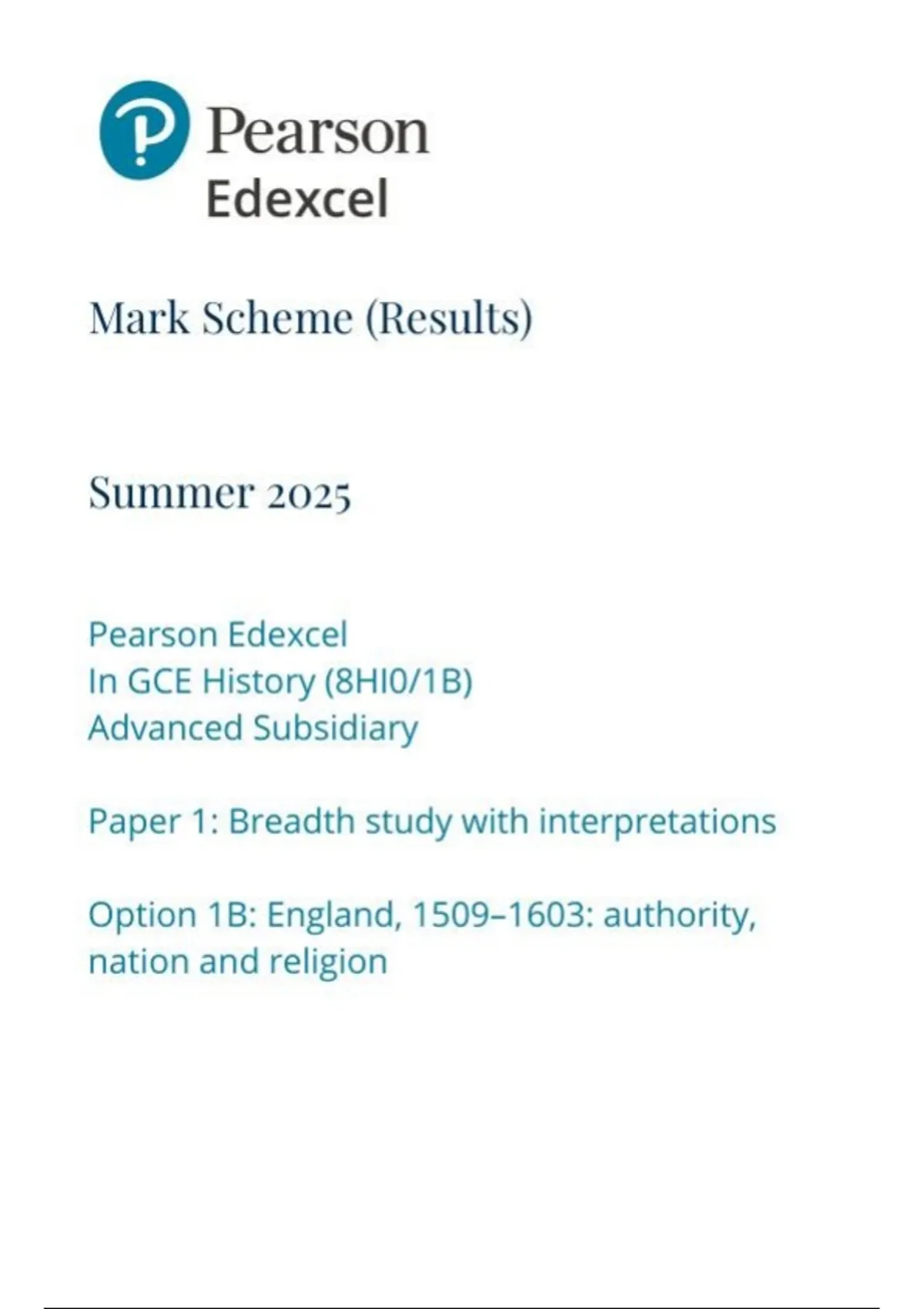Pearson Edexcel as level History |final mark scheme |2025 | 8HI0/1b