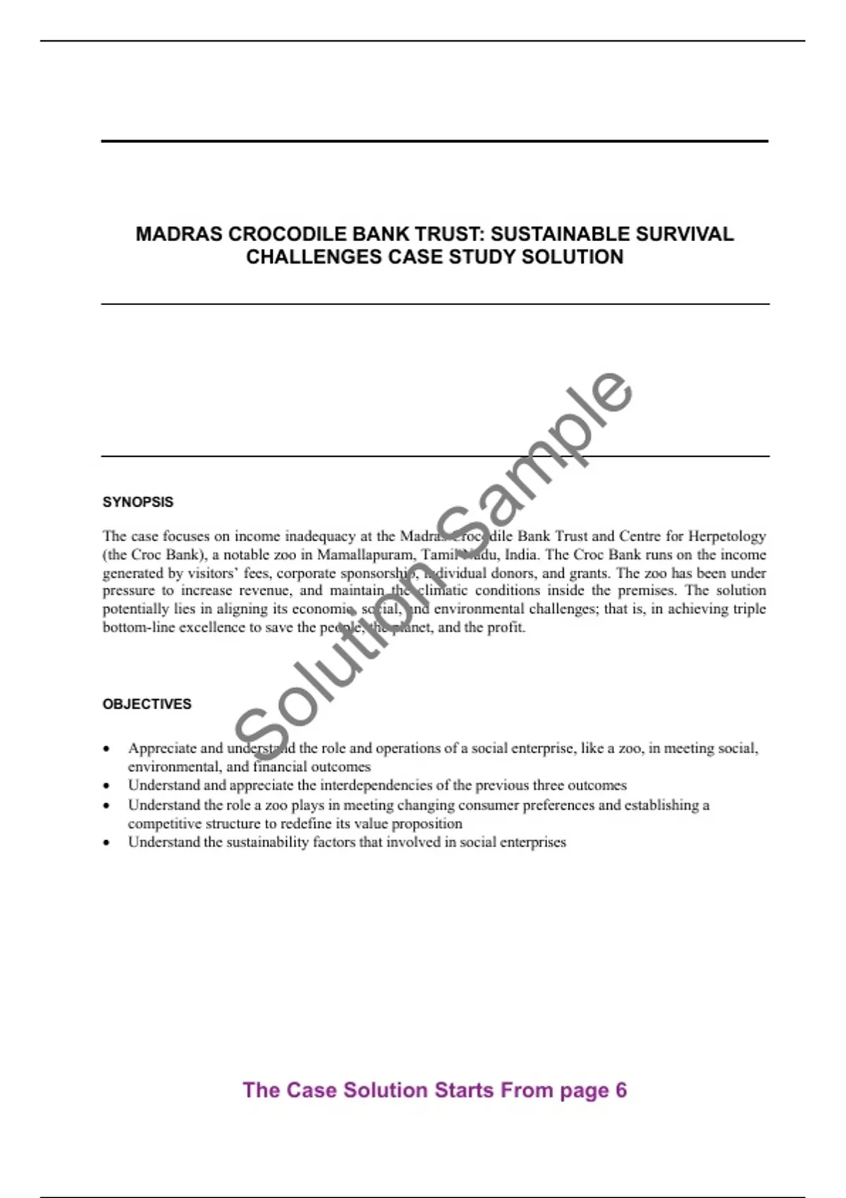 Get the Madras Crocodile Bank Trust Sustainable Survival Challenges Case Study Solution and Analysis by Vijayabaskar M, Manoj Gour Chintaluri, Lubza Nihar, Santanu Mandal | Case ID: W36676. We guarantee that this case solution is 100% original, official, and not AI-generated. It is a plagiarism-free, complete, and well-structured solution, perfect for exam preparation, assignments, and research.