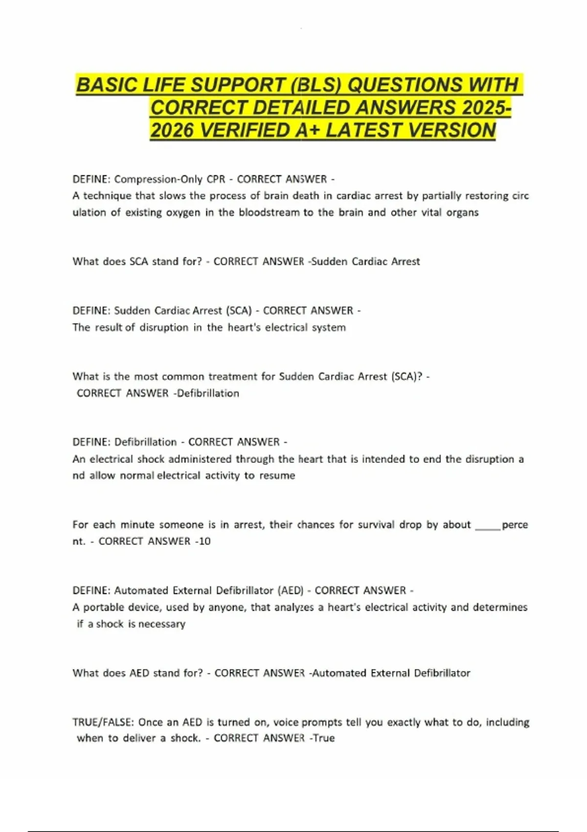 BASIC LIFE SUPPORT (BLS) QUESTIONS WITH CORRECT DETAILED ANSWERS VERIFIED A+ LATEST VERSION