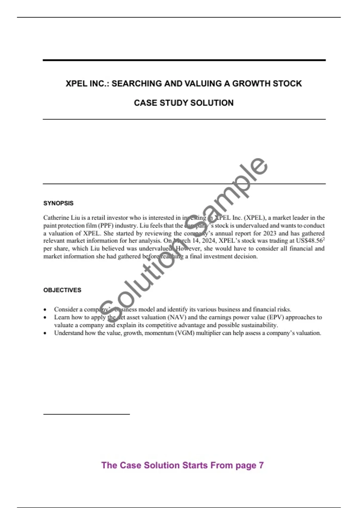 relevant market information for her analysis. On March 14, 2024, XPEL’s stock was trading at US$48.562