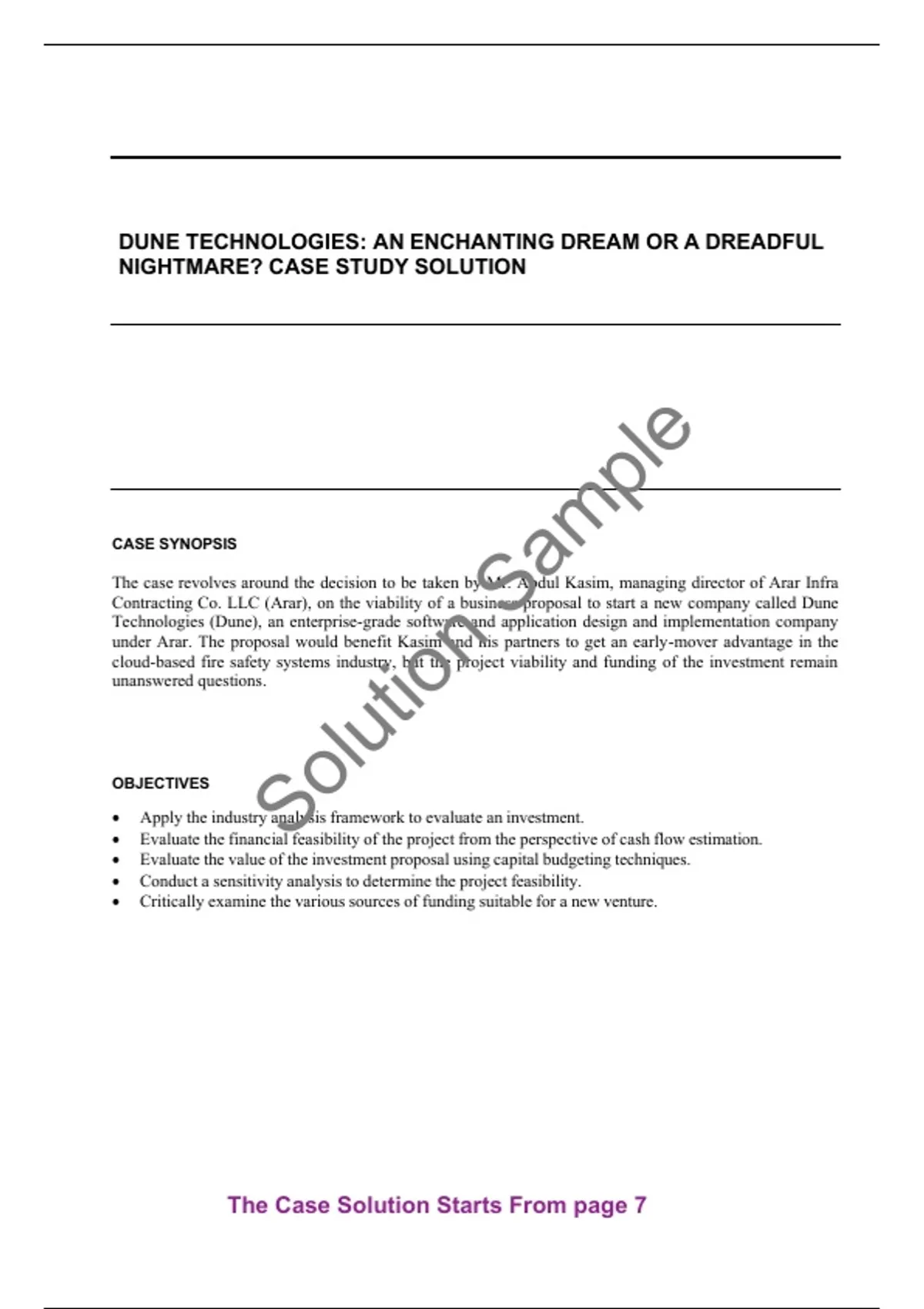 Contracting Co. LLC (Arar), on the viability of a business proposal to start a new company called Dune