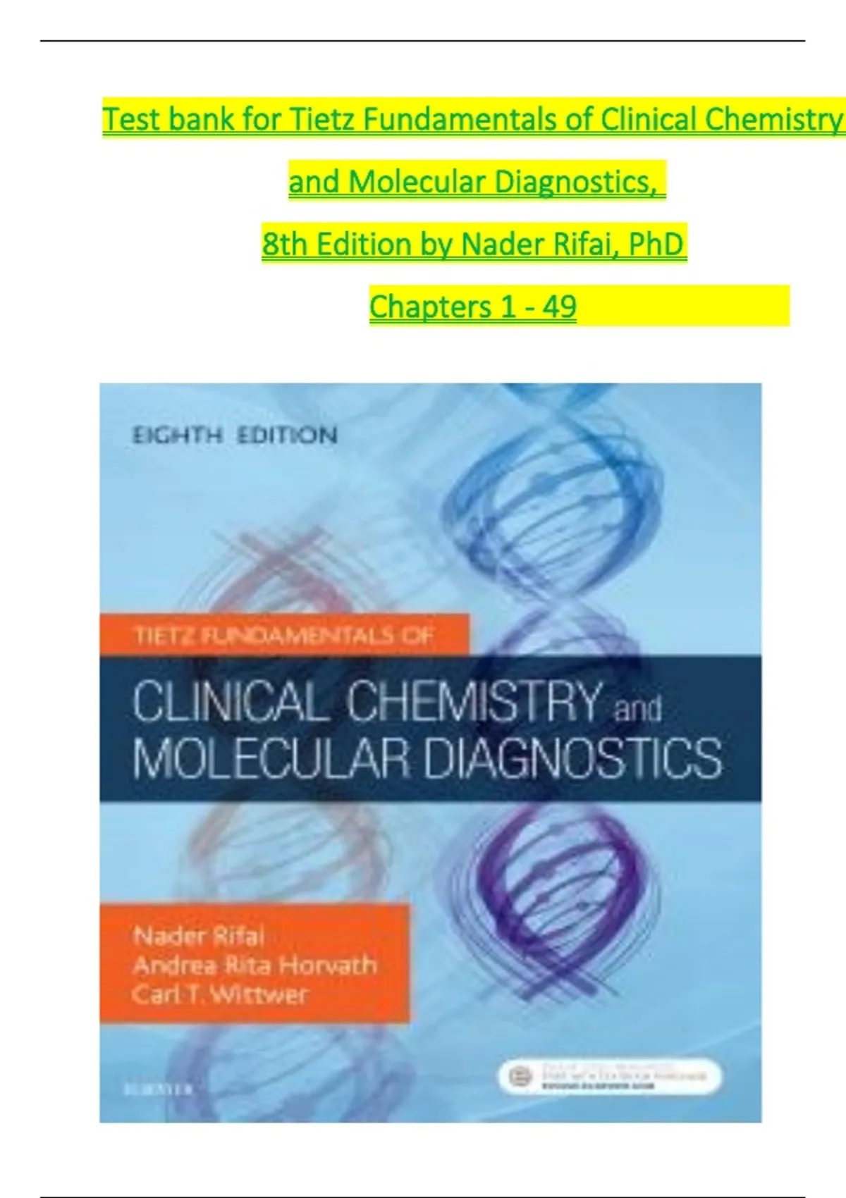 ,Tietz Fundamentals of Clinical Chemistry and Molecular Diagnostics 8th Edition Test Bank