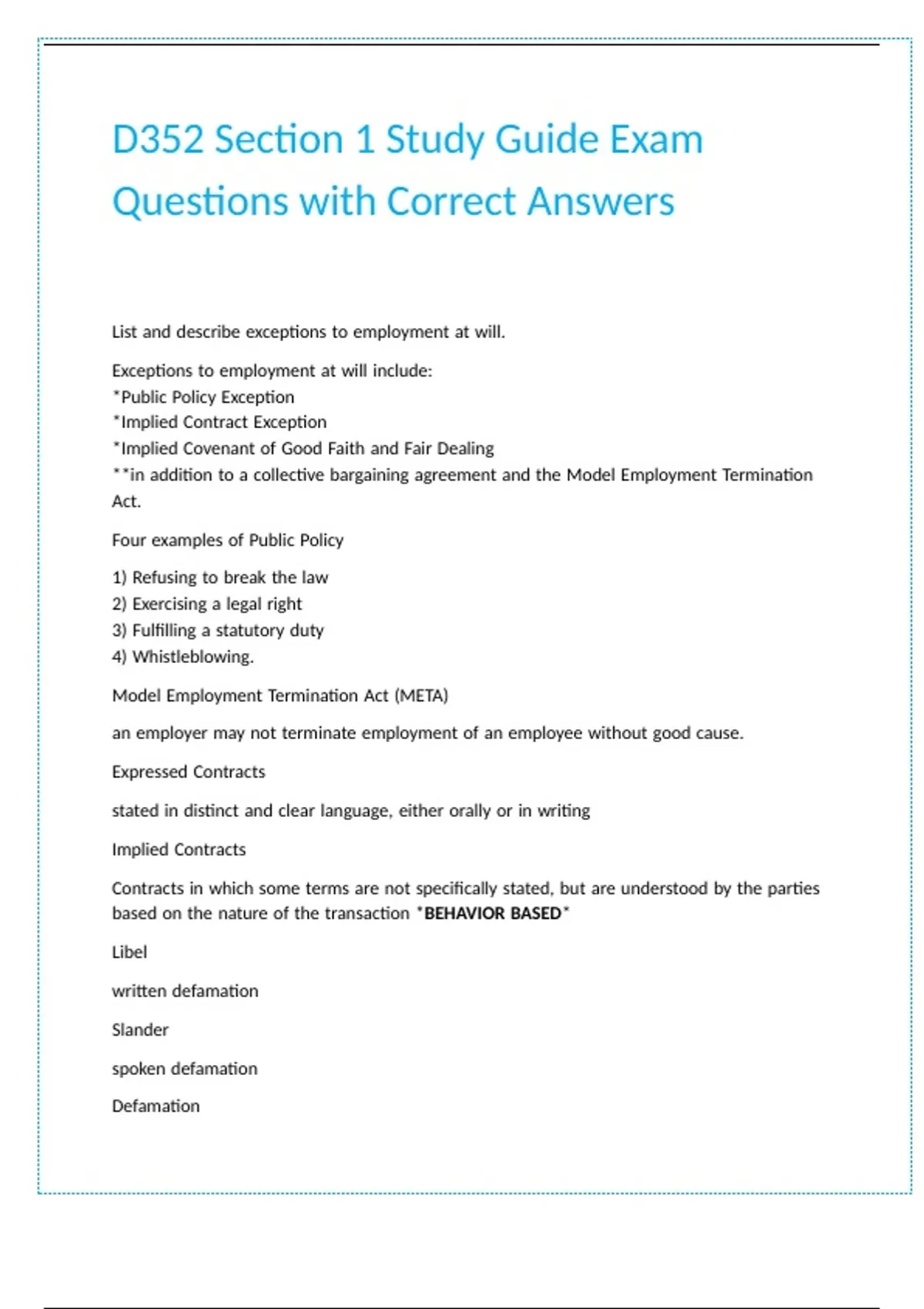 D352 Section 1 Study Guide Exam Questions with Correct Answers.