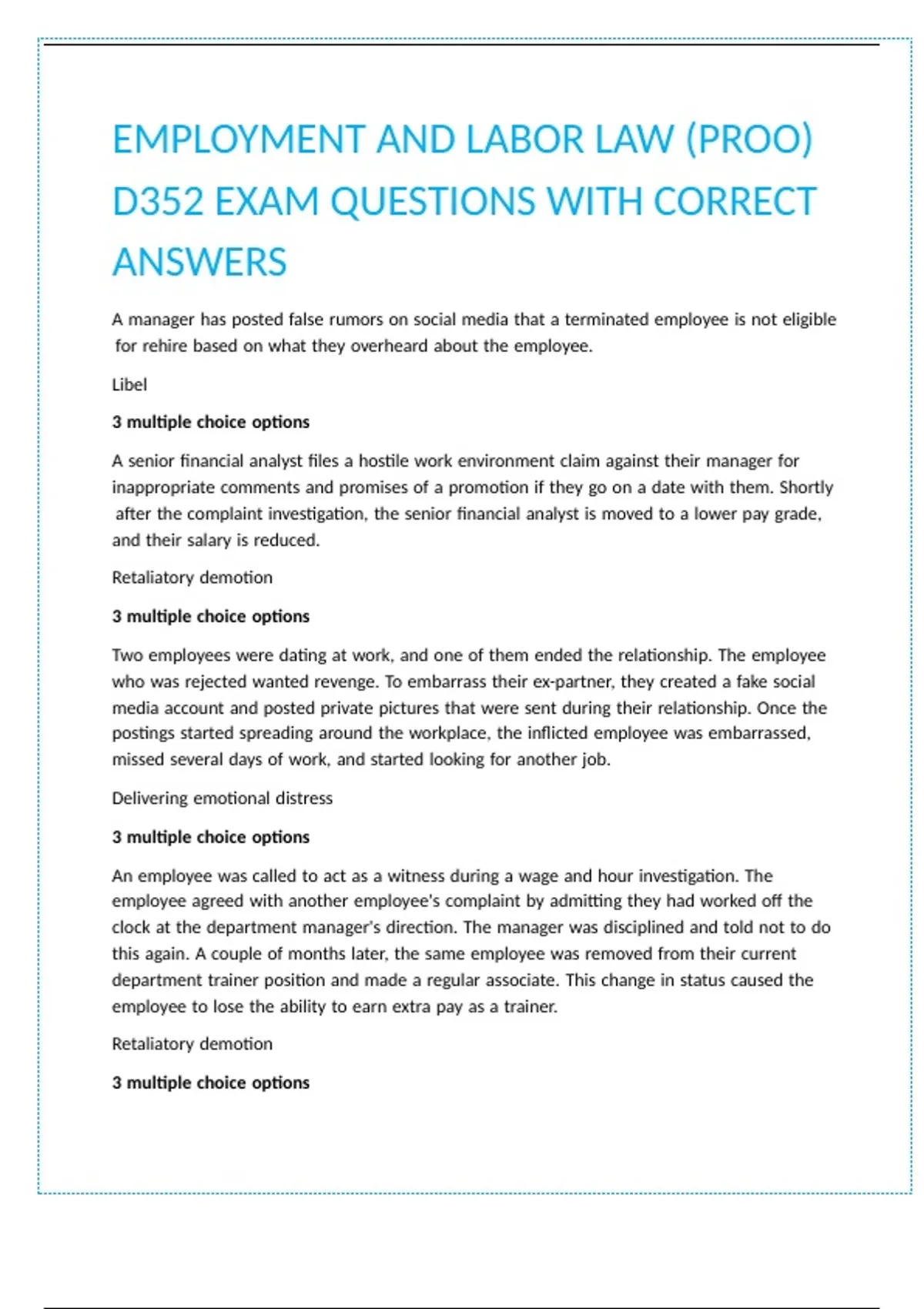 EMPLOYMENT AND LABOR LAW (PROO) D352 EXAM QUESTIONS WITH CORRECT ANSWERS