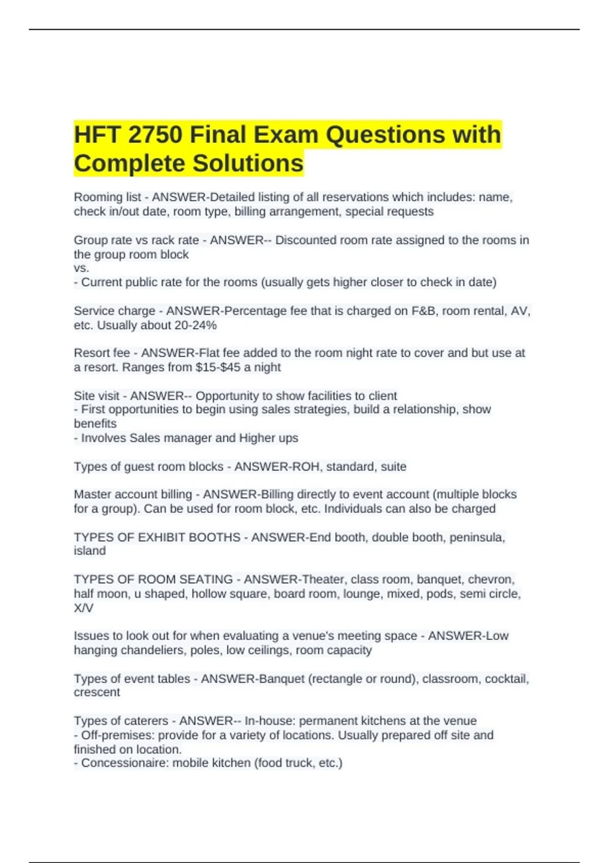 HFT 2750 Final Exam Questions with
