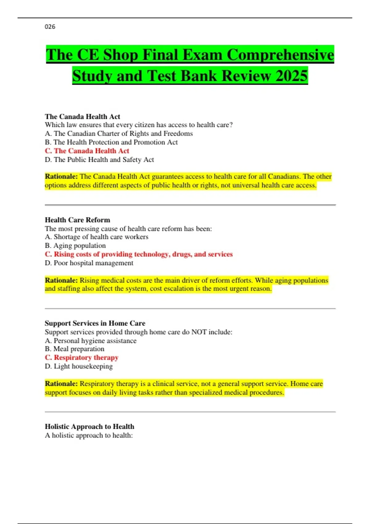 Rationale: The Canada Health Act guarantees access to health care for all Canadians. The other