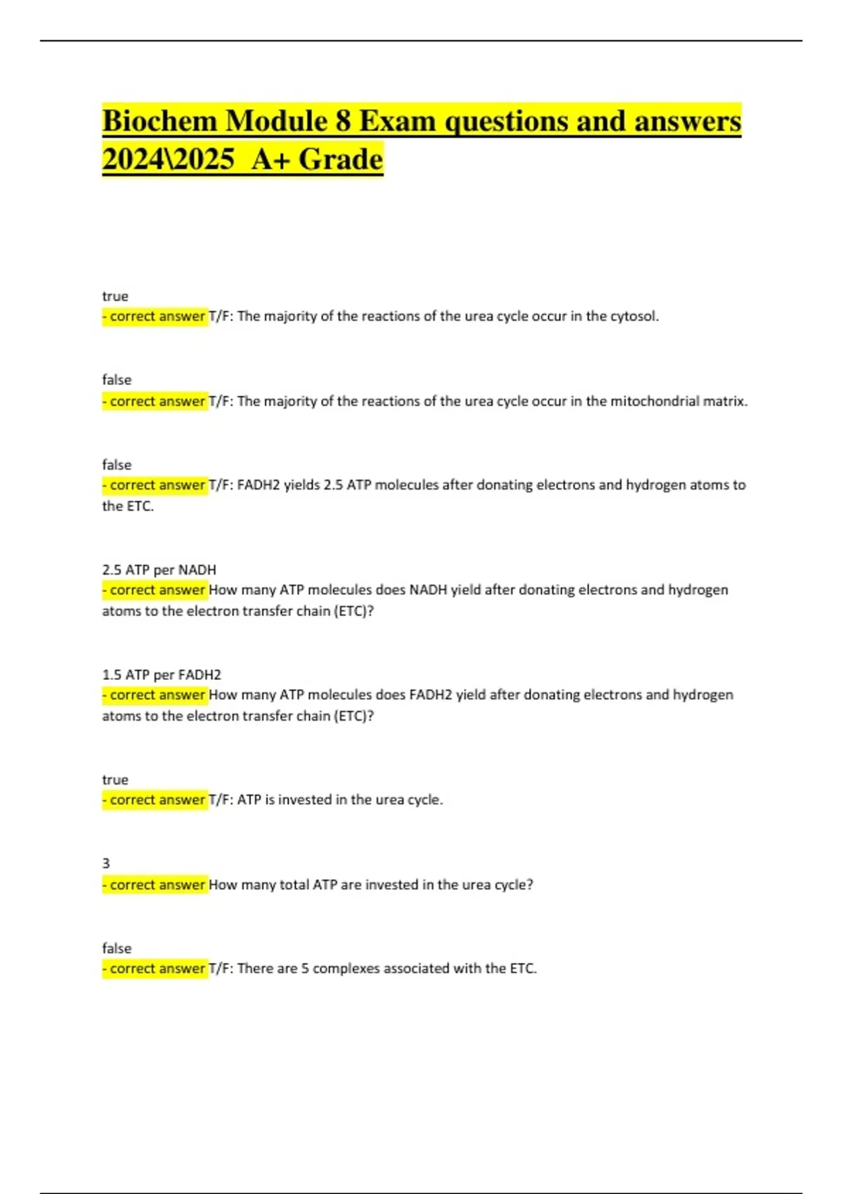 - correct answer T/F: FADH2 yields 2.5 ATP molecules after donating electrons and hydrogen atoms to