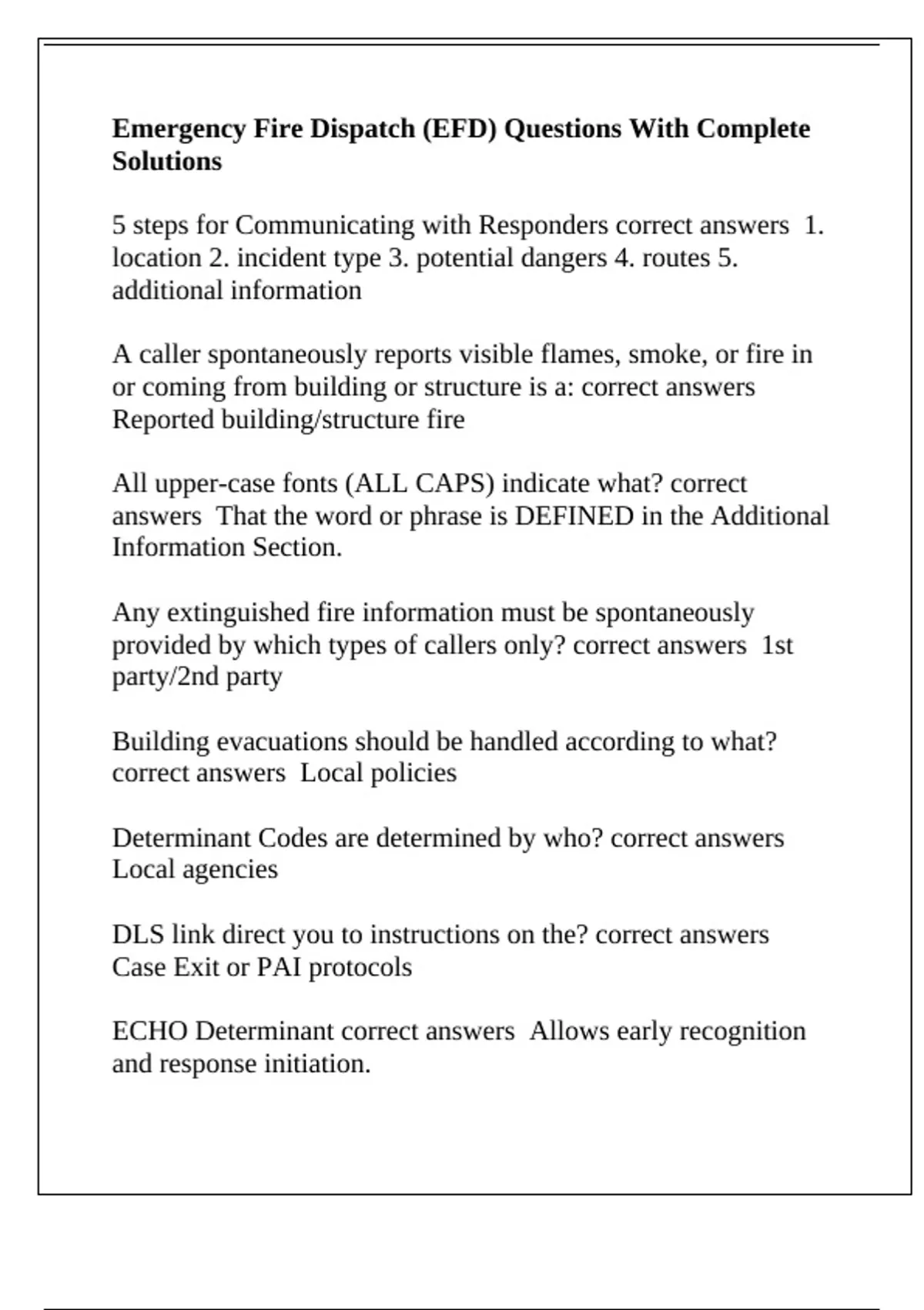 EFD Stands for correct answers emergency fire dispatcher