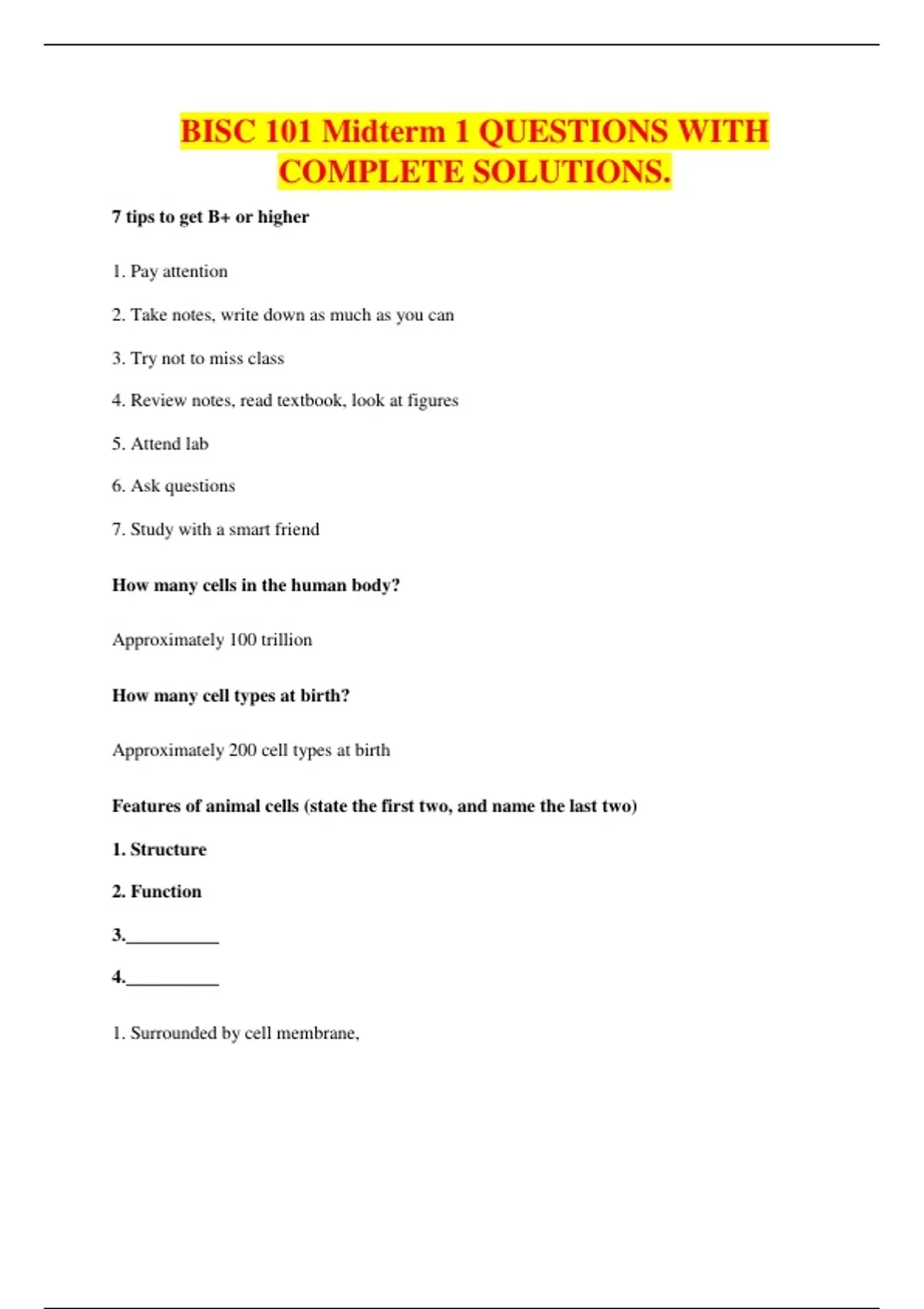 BISC 101 Midterm 1 QUESTIONS WITH