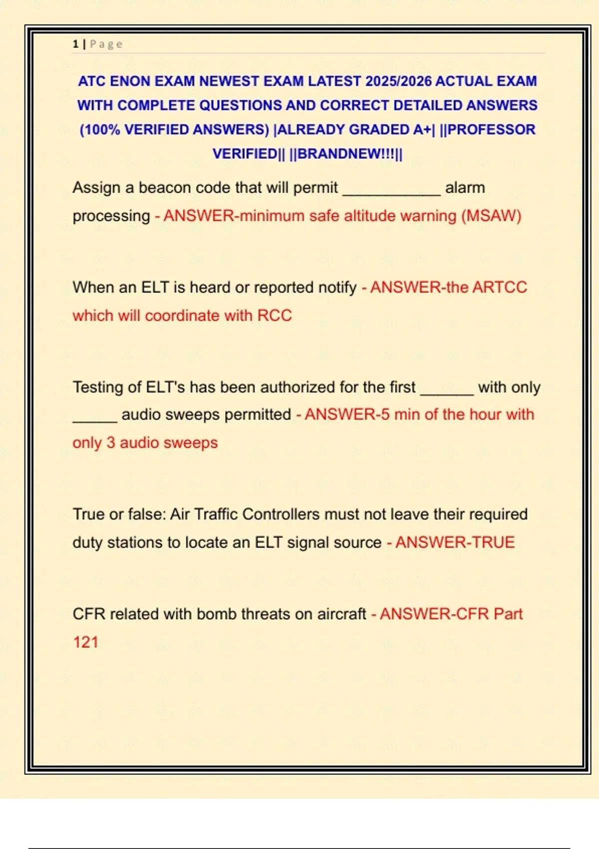 ATC ENON EXAM NEWEST EXAM LATEST 2025/2026 ACTUAL EXAM