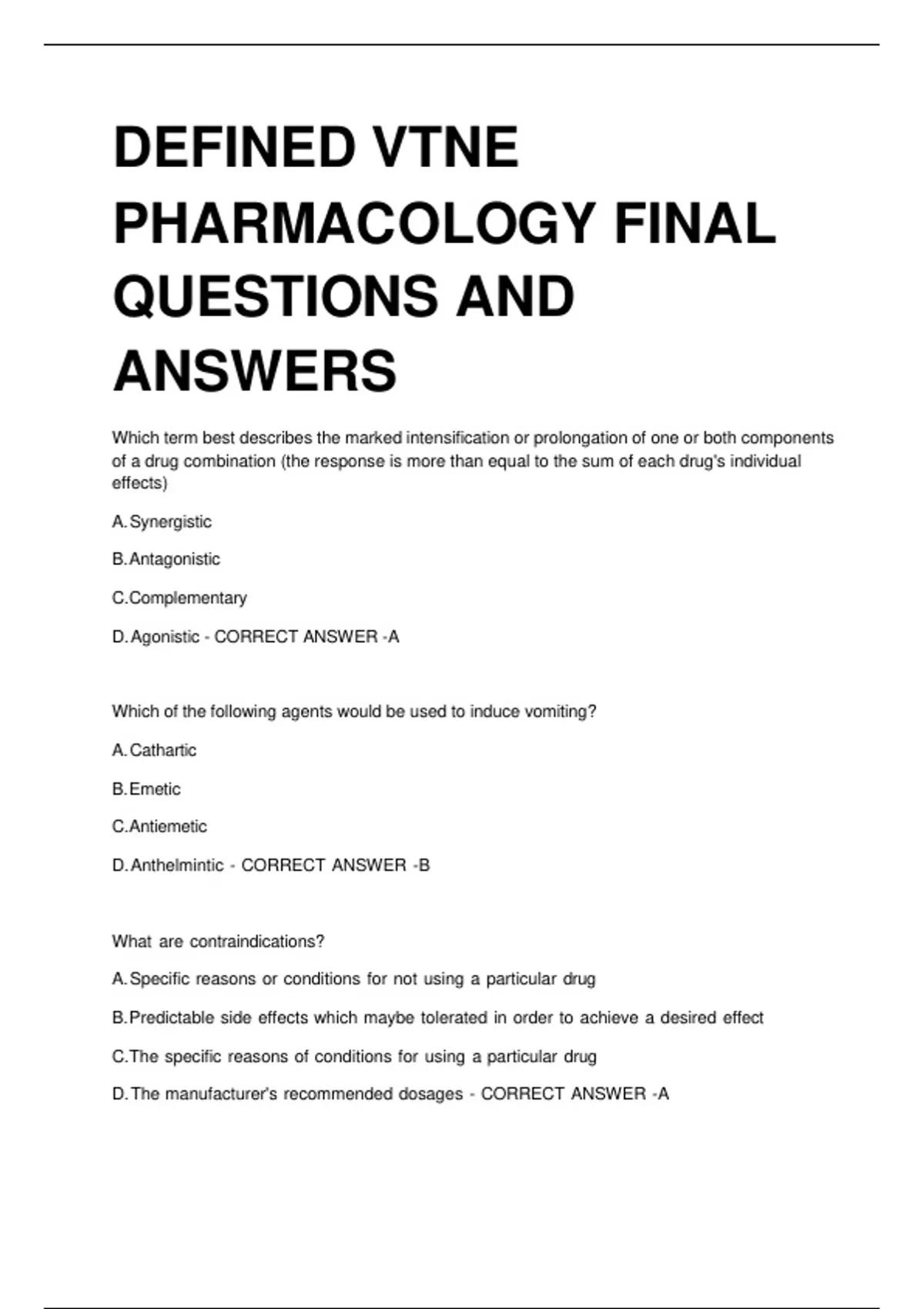DEFINED VTNE Pharmacology Final Questions & Answers – Complete Vet-Tech Pharmacy A+