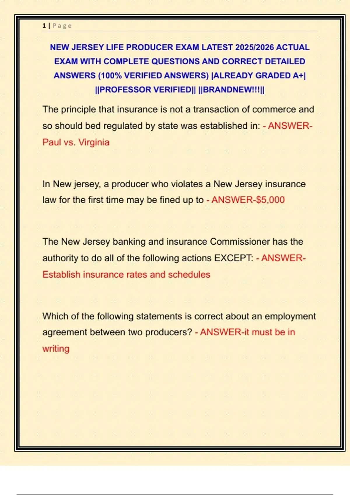 NEW JERSEY LIFE PRODUCER EXAM LATEST 2025/2026 ACTUAL