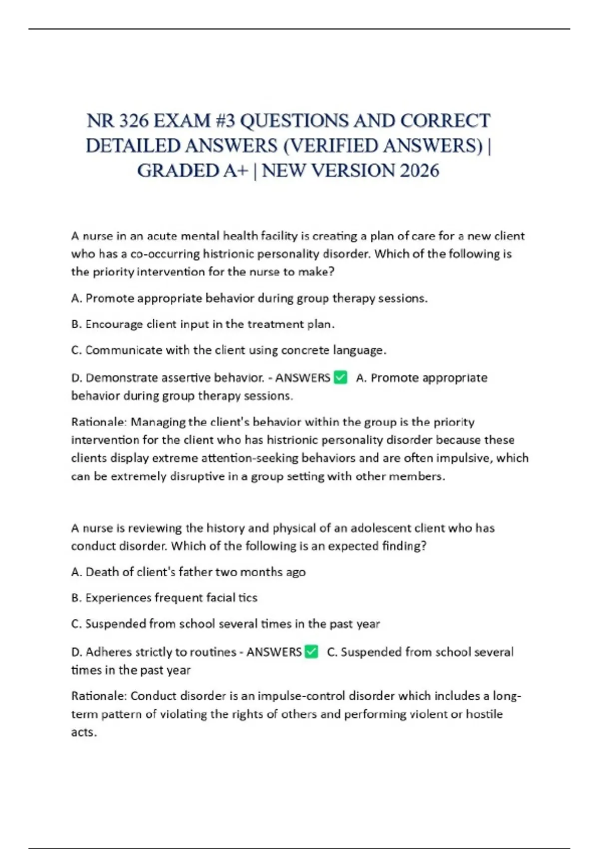 NR 326 EXAM BUNDLED QUESTIONS AND CORRECT DETAILED ANSWERS (VERIFIED ANSWERS) | GRADED A | NEW UPDATE 2025-2026