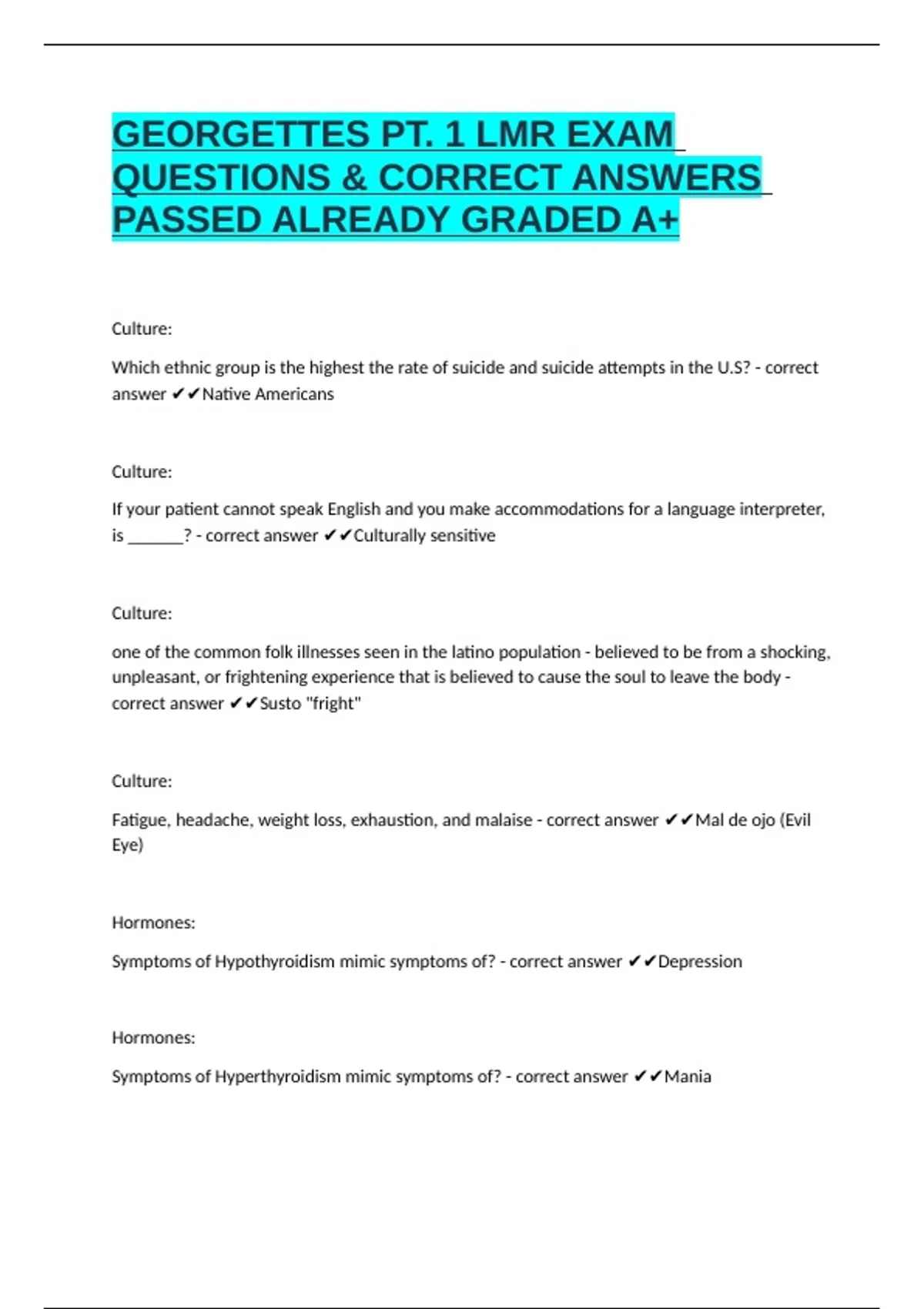 GEORGETTES PT. 1 LMR EXAM QUESTIONS & CORRECT ANSWERS PASSED ALREADY GRADED A+