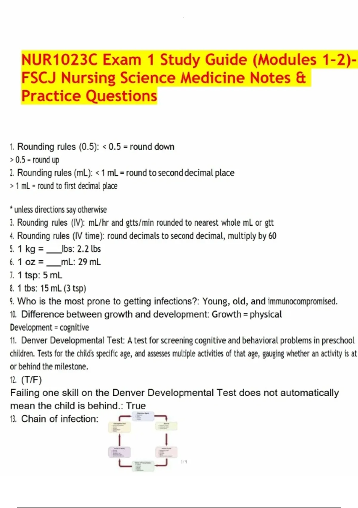 NUR1023C Exam 1 Study Guide (Modules 1–2)- FSCJ Nursing Science Medicine Notes & Practice Questions.pdf